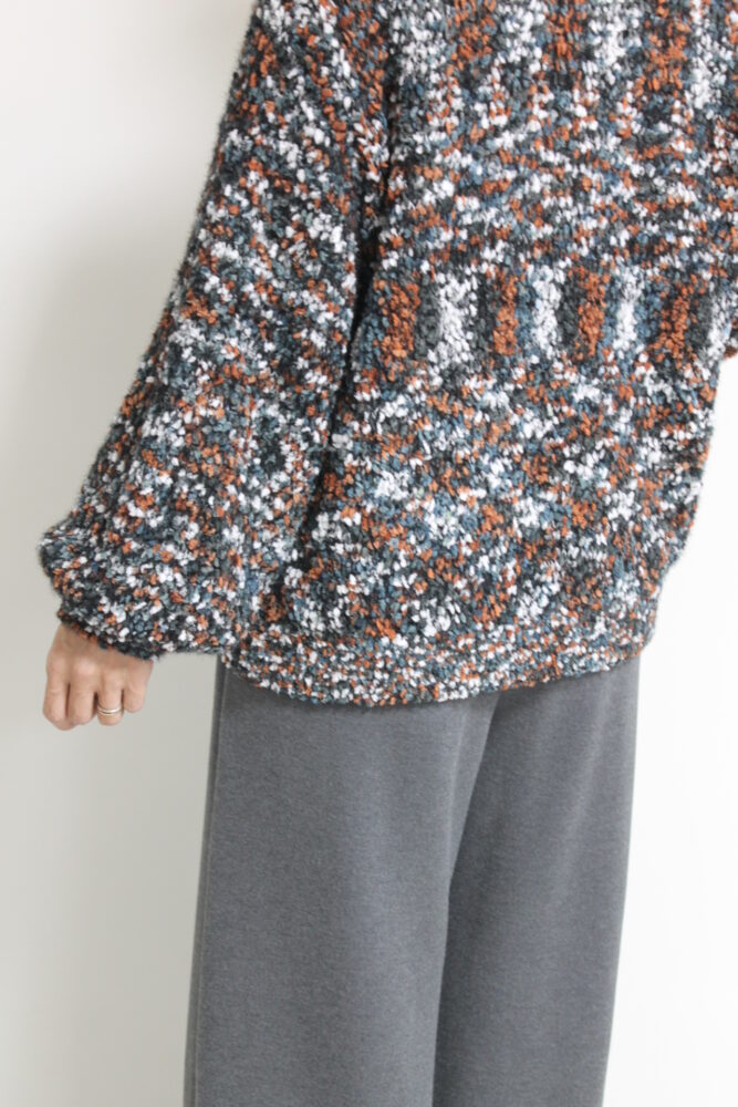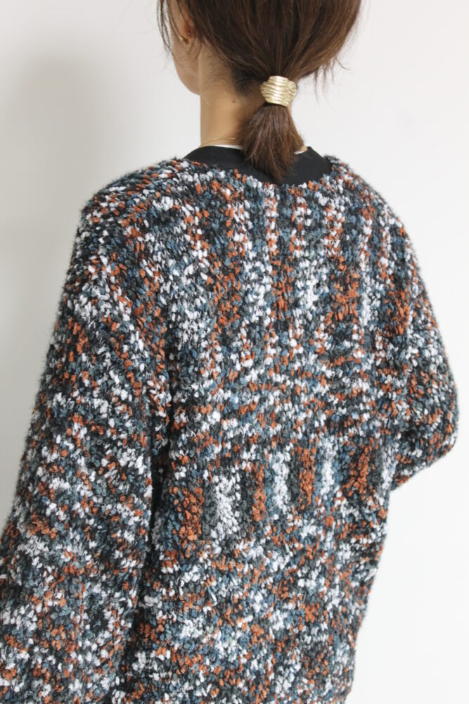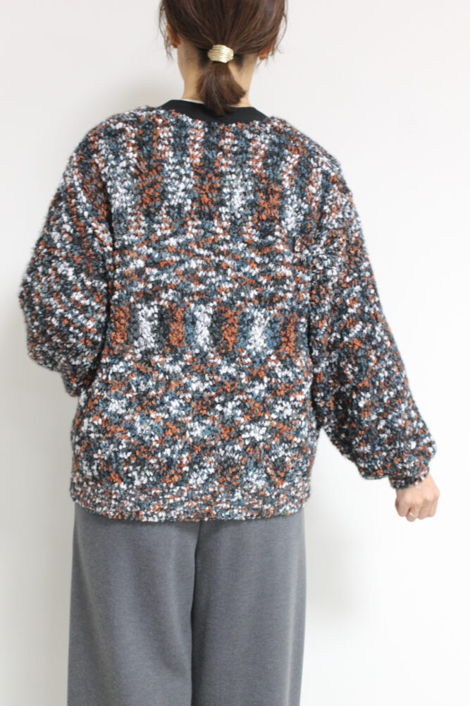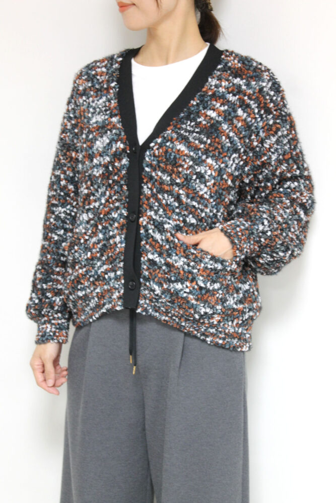 ロージー(ROSIEE)ファンシーヤーンシャギーニットカーディガン/ブラウン×ブラック