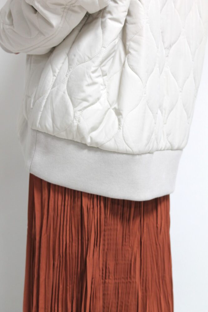 ちょっとしたお出かけだけでなく様々なシーンで活躍してくれるシロデラボンテ(siro de labonte)キルティングMA1ジャケット。たっぷりとした身幅に広いアームホールとルーズなシルエットがこなれ感のあるデザイン。インナーに厚手のニットやパーカーなどもたっぷりと着込むことができます。ヒップまでしっかり隠れる丈感なので体型カバーも叶います◎