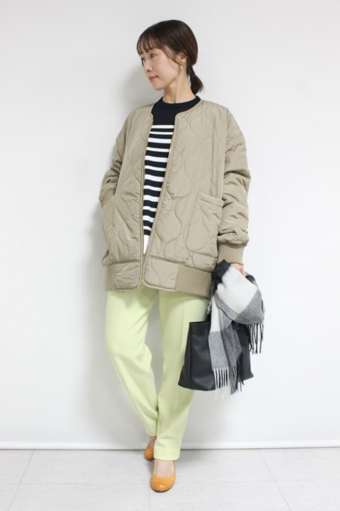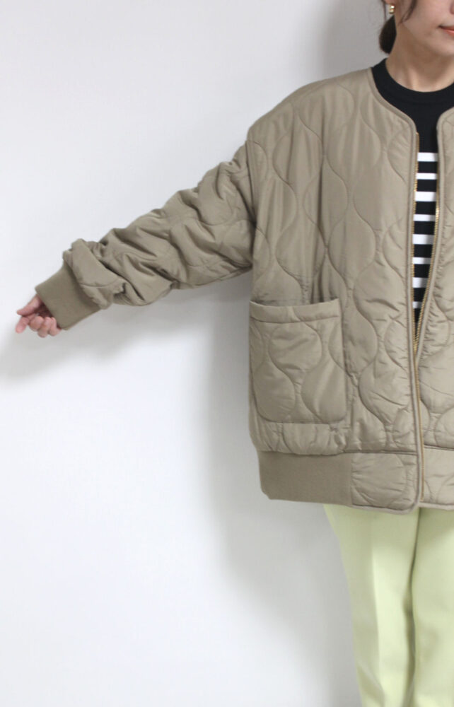 ちょっとしたお出かけだけでなく様々なシーンで活躍してくれるシロデラボンテ(siro de labonte)キルティングMA1ジャケット。たっぷりとした身幅に広いアームホールとルーズなシルエットがこなれ感のあるデザイン。インナーに厚手のニットやパーカーなどもたっぷりと着込むことができます。ヒップまでしっかり隠れる丈感なので体型カバーも叶います◎