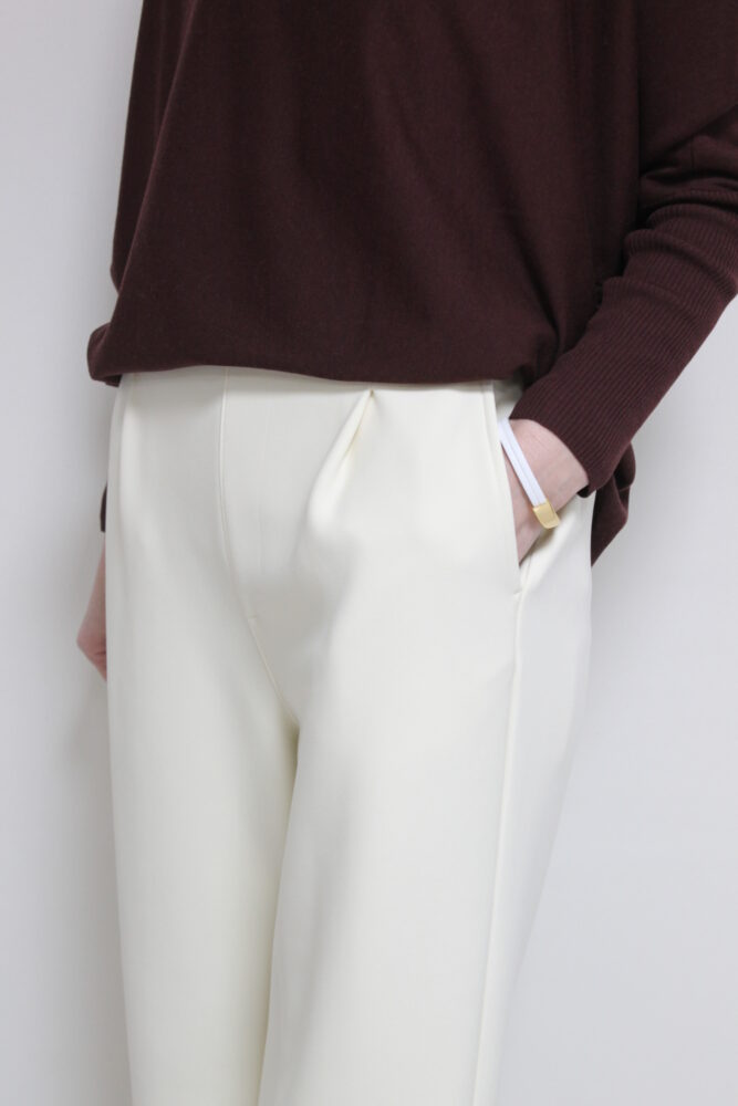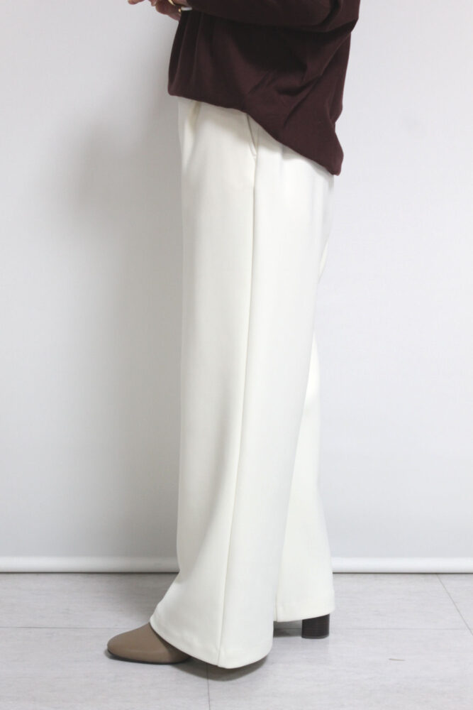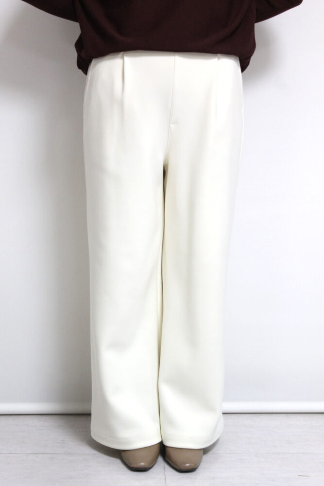 【あたたか素材】ディニテコリエ(Dignite Collier)裏フリースワイドパンツ/アイボリー