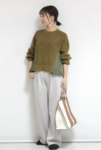 ロージー(ROSIEE)ミリタリー風ドッキングニット/カーキ×カーキ