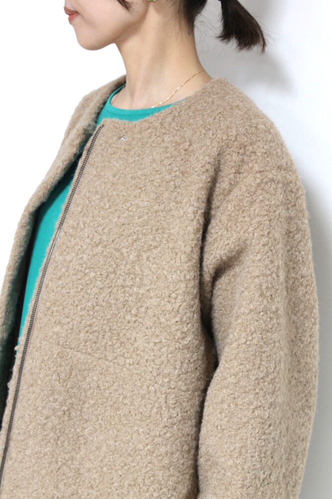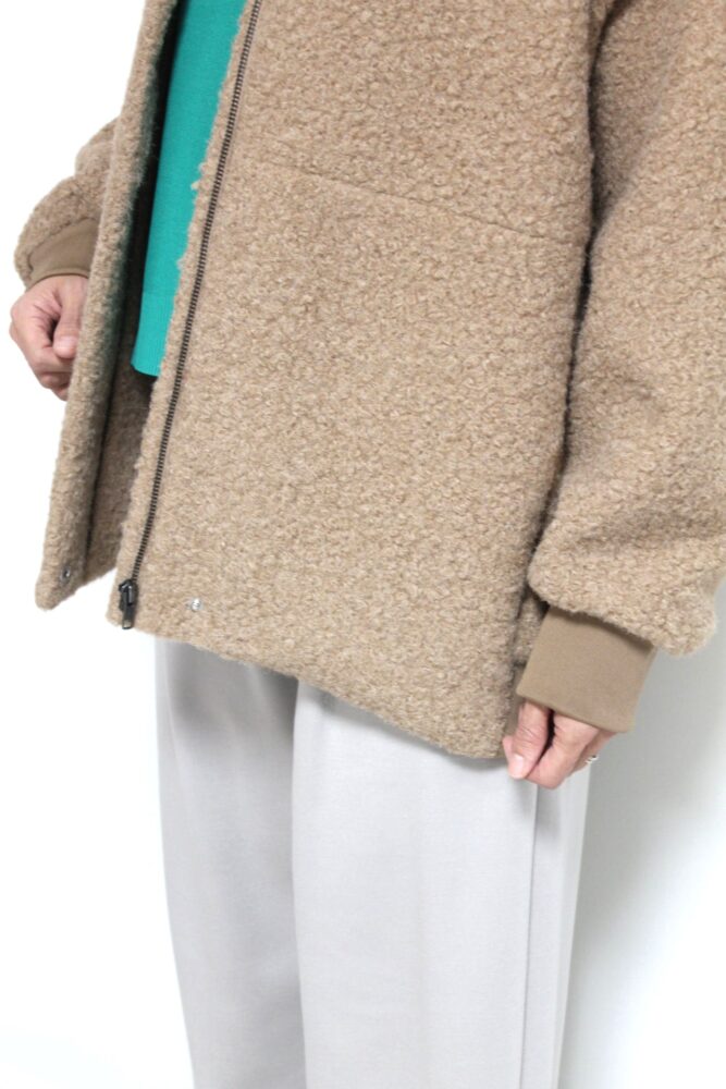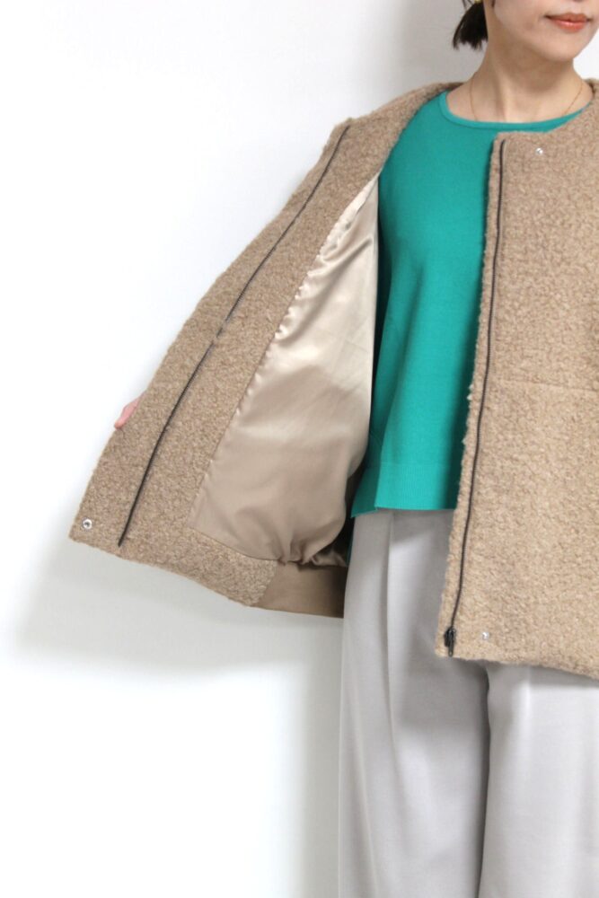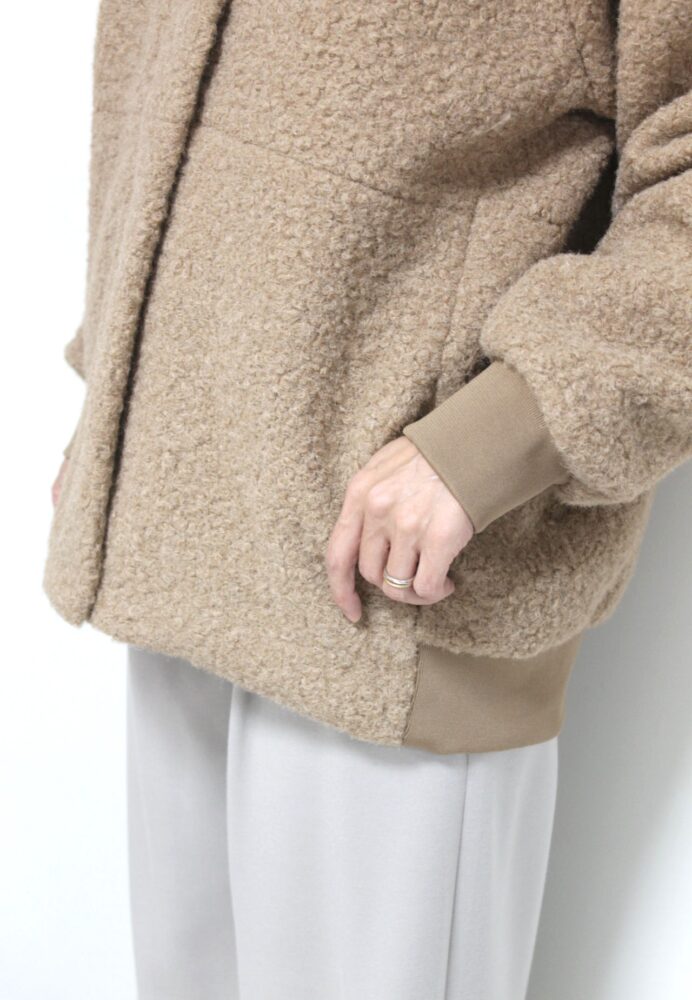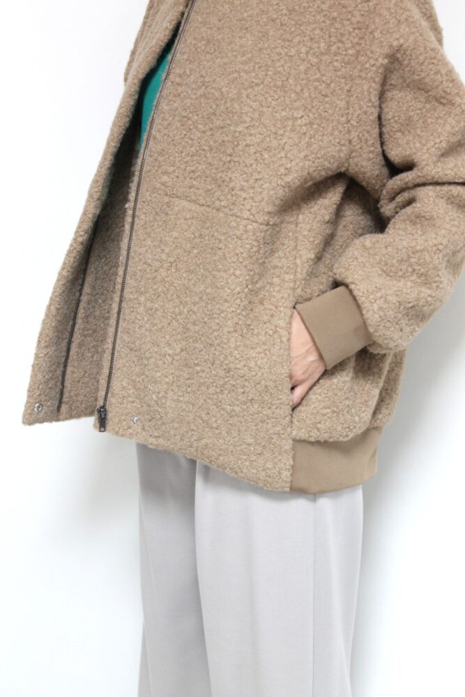 ウールのような温かみのある質感が特徴のディニテコリエ(Dignite Collier)モヘア混ボアブルゾン。ウールやダウンのコートよりも早い時期から着用できる便利なアイテムです。アームホールをたっぷりと取っているので厚みのあるトップスにも◎。モコモコとした柔らかな肌触りが思わずクセになりますよ。(すべりの良いナイロン裏地が付いてます)