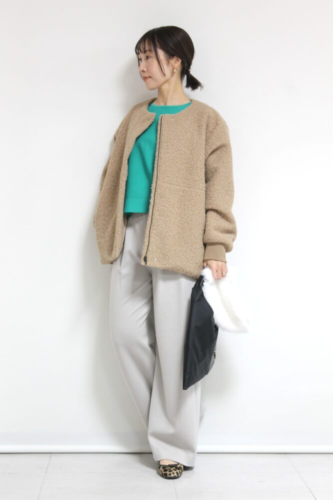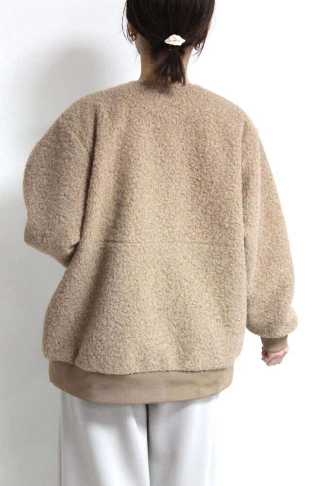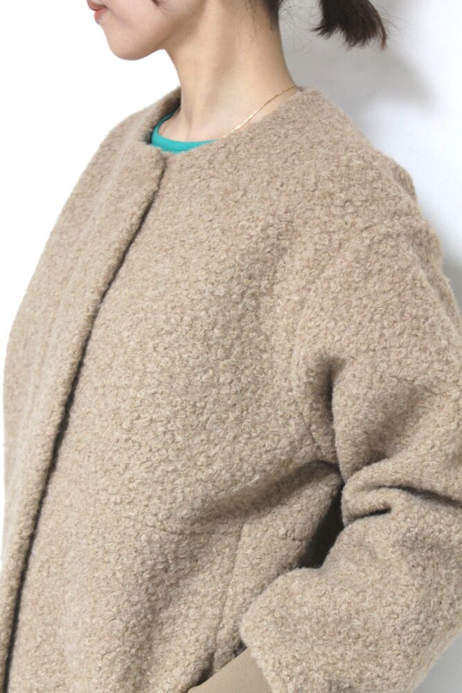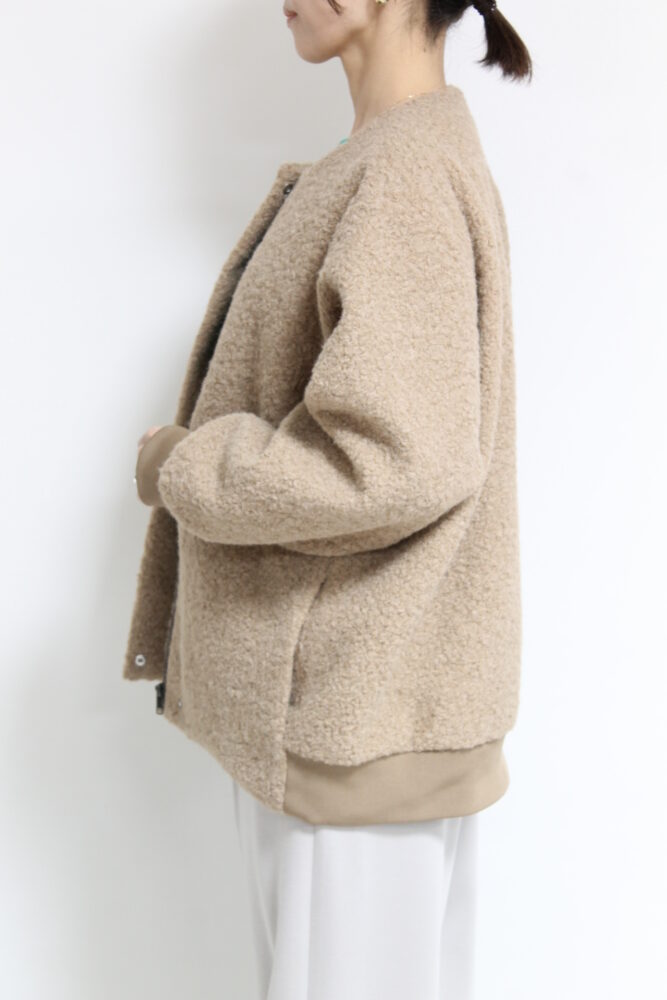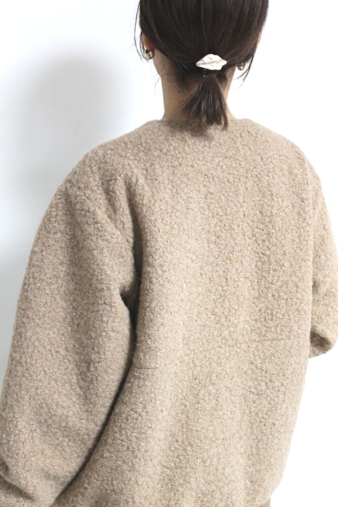 ウールのような温かみのある質感が特徴のディニテコリエ(Dignite Collier)モヘア混ボアブルゾン。ウールやダウンのコートよりも早い時期から着用できる便利なアイテムです。アームホールをたっぷりと取っているので厚みのあるトップスにも◎。モコモコとした柔らかな肌触りが思わずクセになりますよ。(すべりの良いナイロン裏地が付いてます)