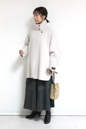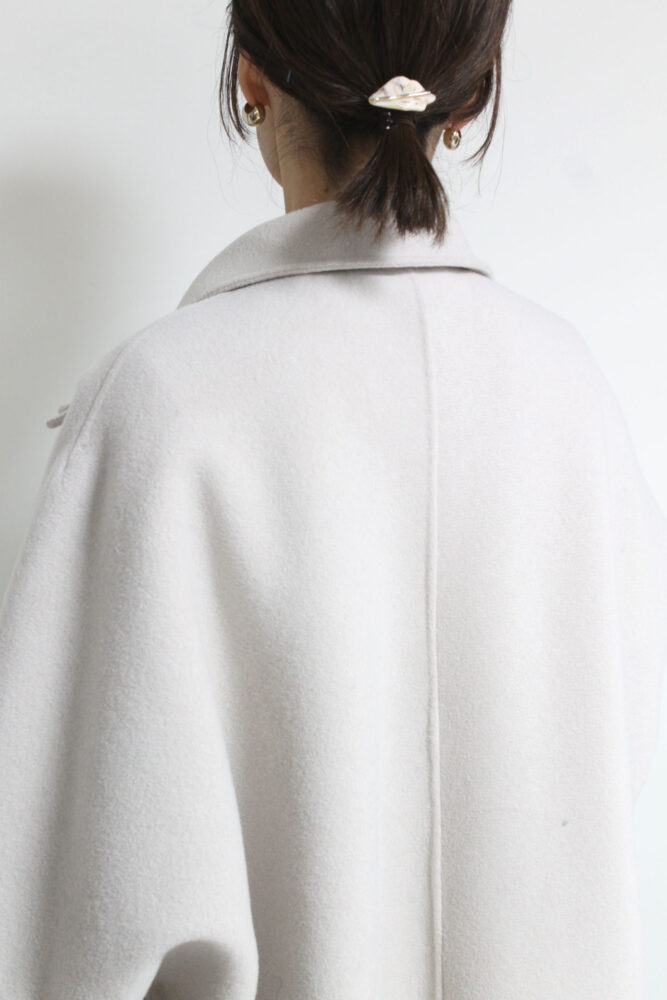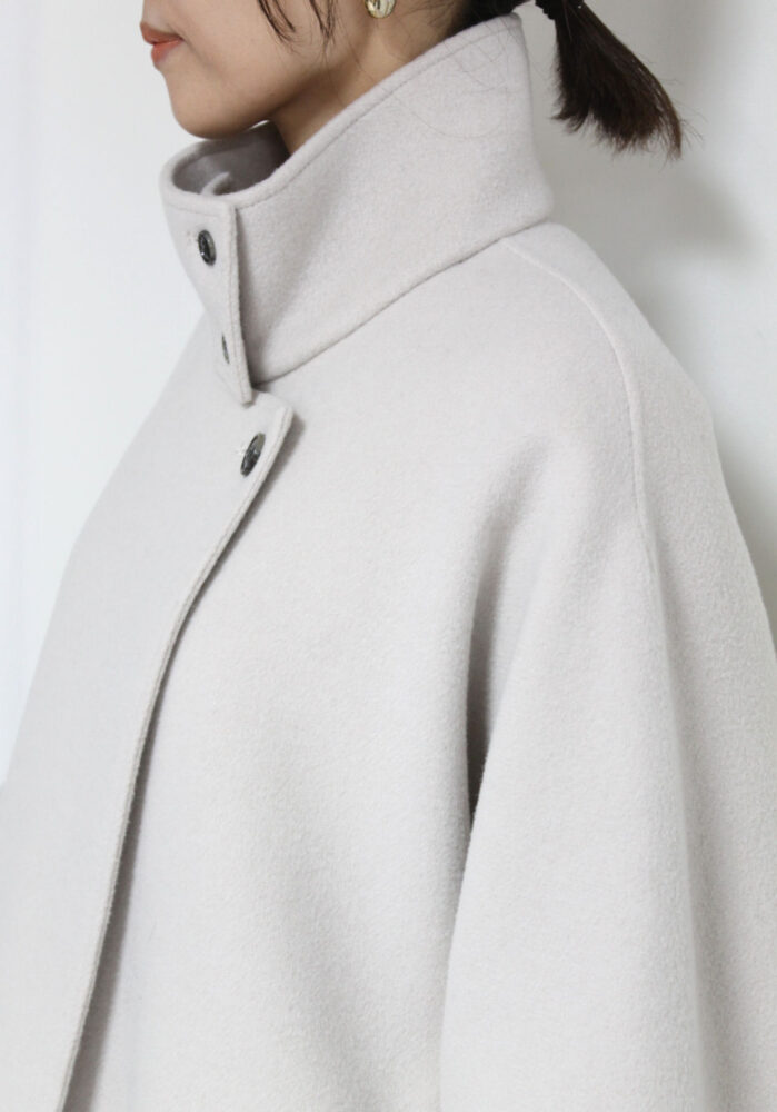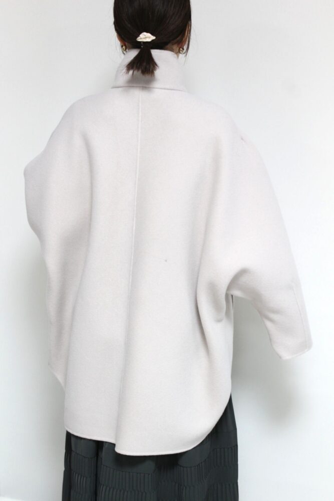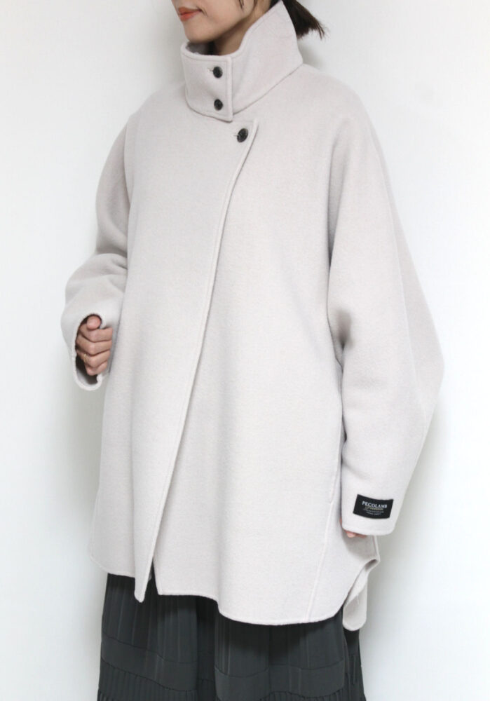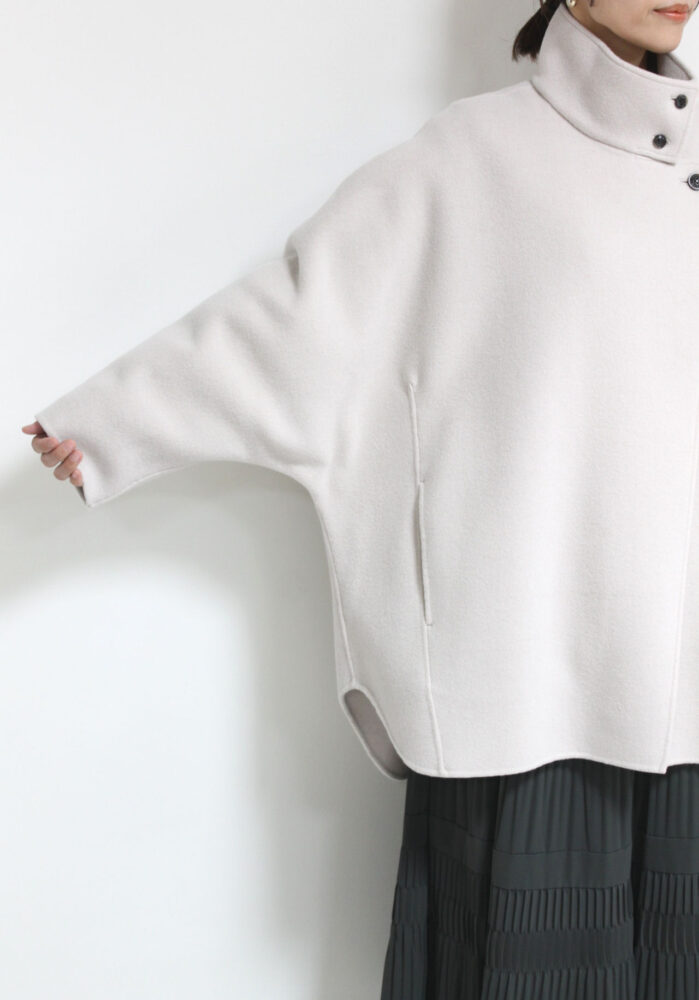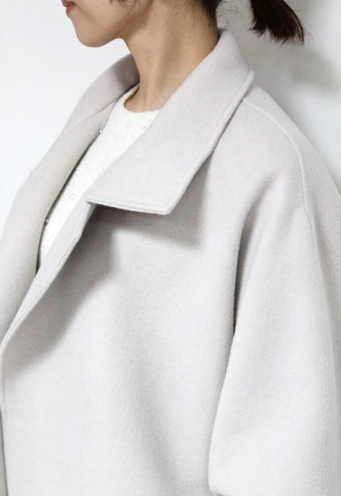 ディニテコリエ(Dignite Collier)ダブルフェイスドルマンコートは上質なウールを使った軽さと暖かさとファッション性を兼ね備えた大人のアウターです。ゆったりとしたドルマンスリーブで中に厚いニットを着ることももたつきません。襟を立てて首元を暖かく着るのもおすすめです◎(すべりの良い裏地が背中の半分と袖に付いてます)