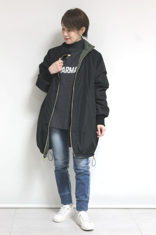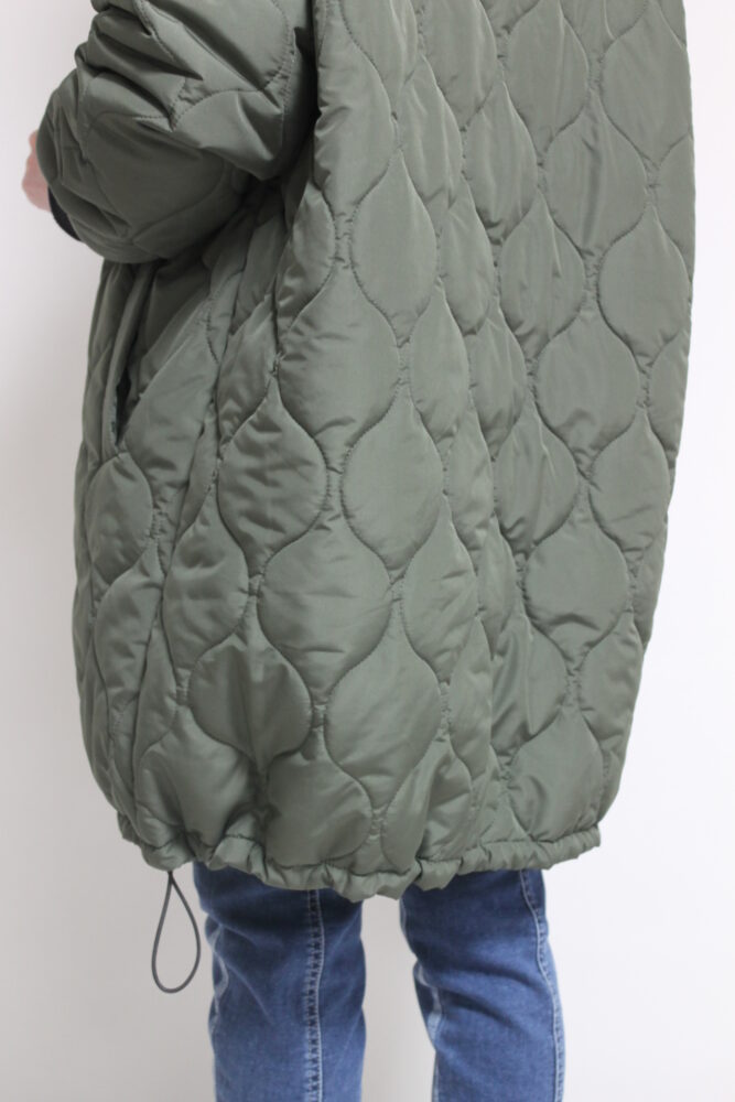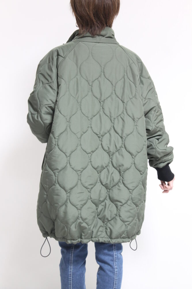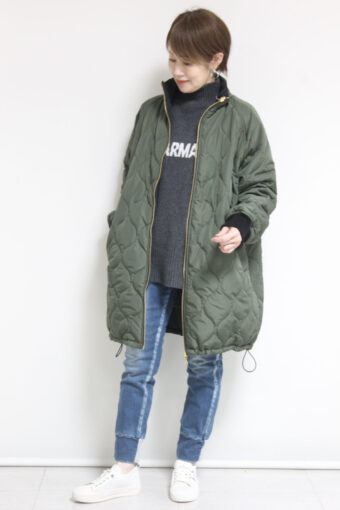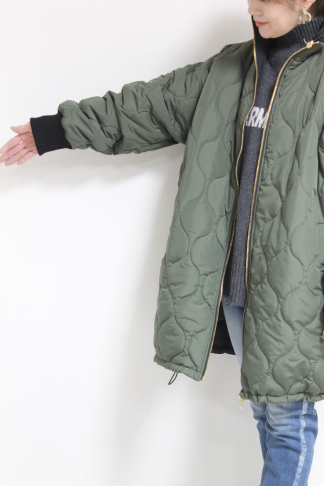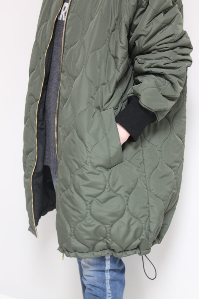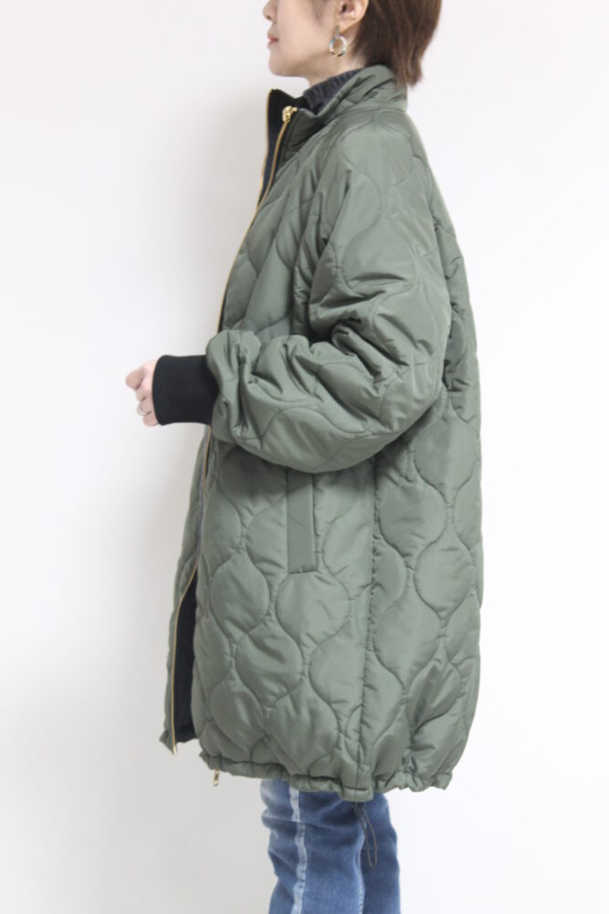 程よくルーズでオーバーサイズシルエットのシロデラボンテ(siro de labonte)ミドル丈中綿コート。リバーシブルで無地とキルティングどちらも楽しめます。デイリーに使える着回し力抜群のアウター。裾にドローコード入りで絞れば立体感のある丸味をおびたシルエットに。