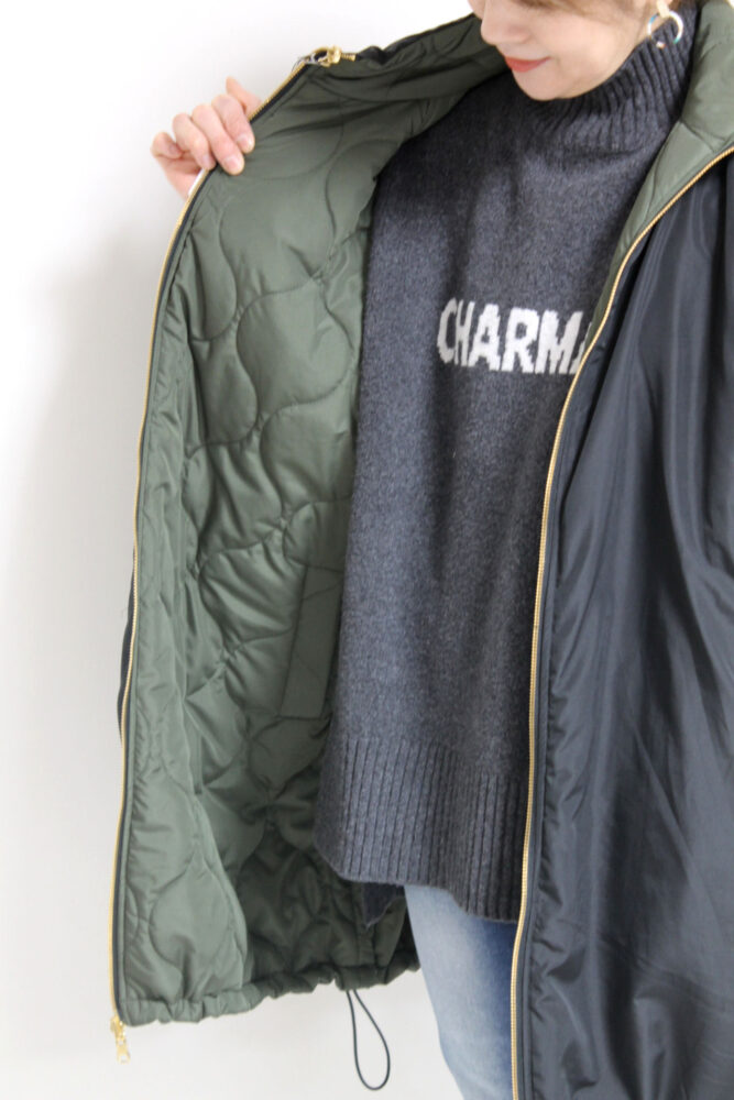 シロデラボンテ(siro de labonte)キルティングリバーシブルコート/カーキ×ブラック