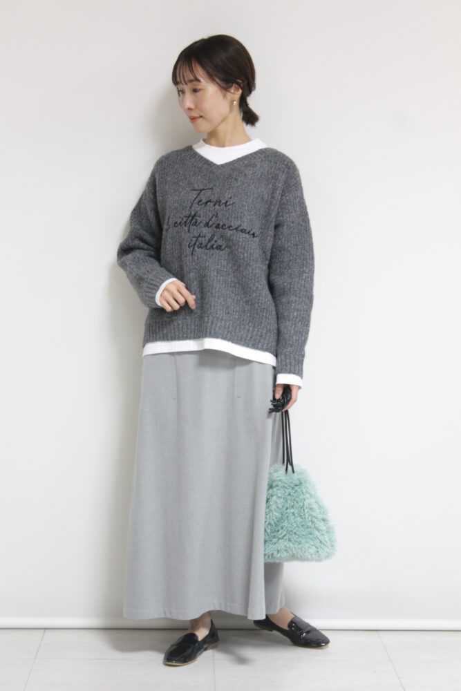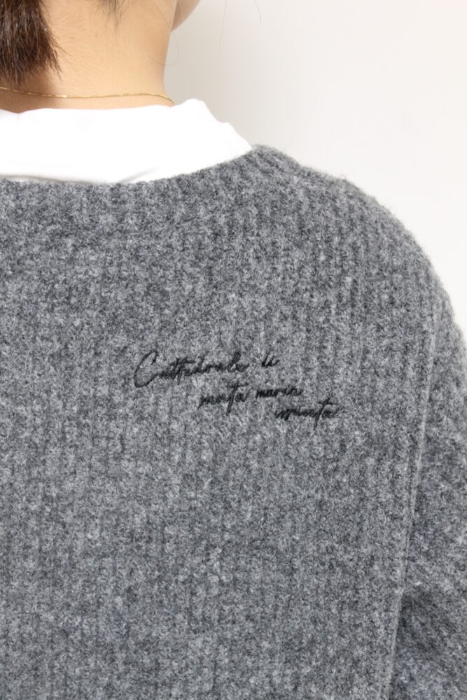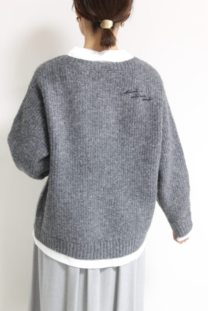 一枚でスタイルが完成して悩まない。首元、袖口、裾からのぞくカットソーがこなれた雰囲気を作ってくれる・・アンカルネ(Un carnet)カットソー重ね着風ロゴ刺繍プルオーバー。ふっくらとして、しっかりした厚みのあるニットですがとっても軽い着心地です。(こんな感じでカットソーの部分が付いてます・・裏返した画像を載せてあります)