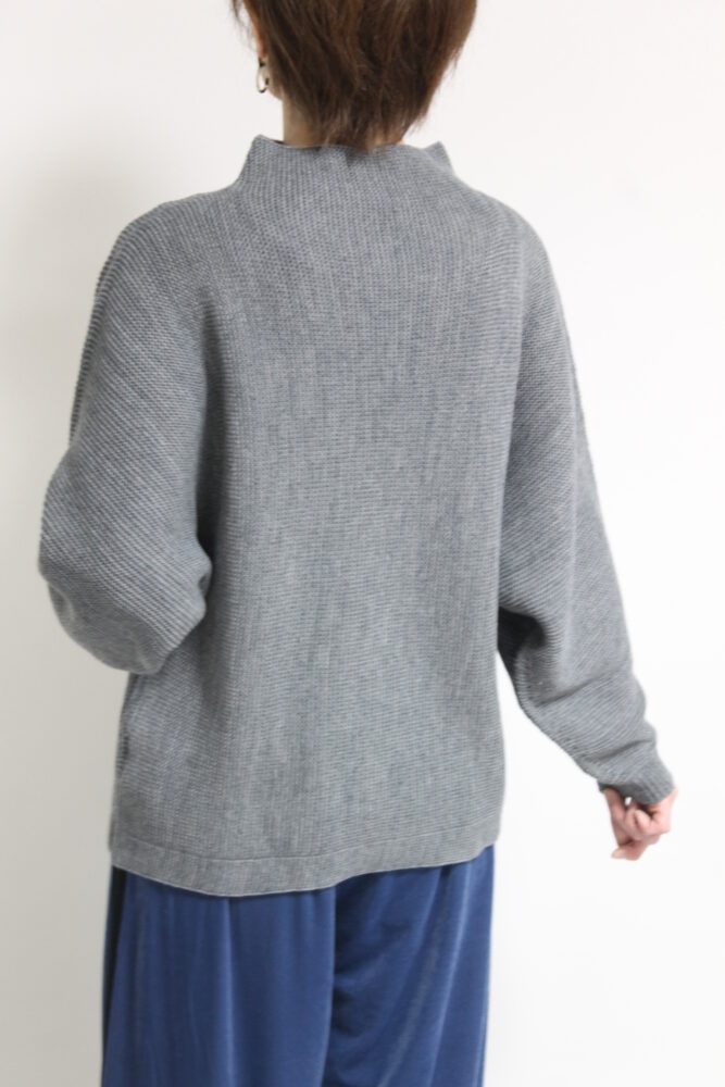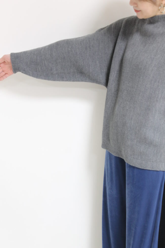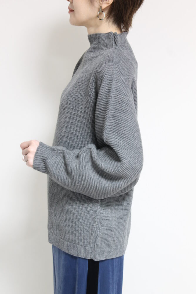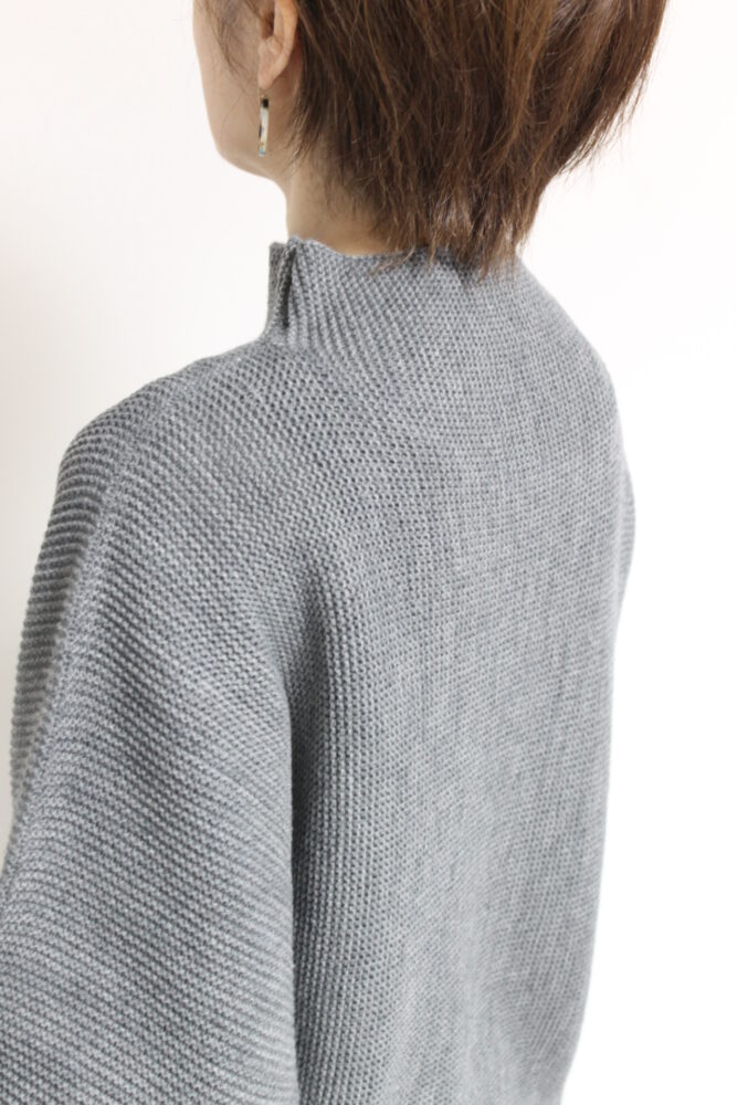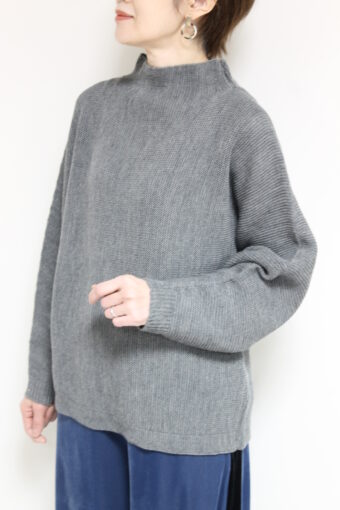 マリードール(MARIED'OR)ウール混ホールガーメントボトルネックP/O。ホールガーメントなので切り替えがなく、ボトルネックですっきりしとしたデザイン。ゆったりとした身幅と日本のウール混糸使用でチクチクしにくく、さらっとしつつ程よい肉感です。