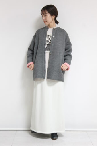 カーディガン感覚で着られる軽い着心地のアンカルネ(Un carnet)ダブルフェイスニットコート。2枚の生地を重ねたダブルフェイスで柔らかい肌触り。ヒップが隠れる安心感のあるミドル丈。スカートからカジュアルなデニムまで幅広いスタイリングに対応出来ます◎