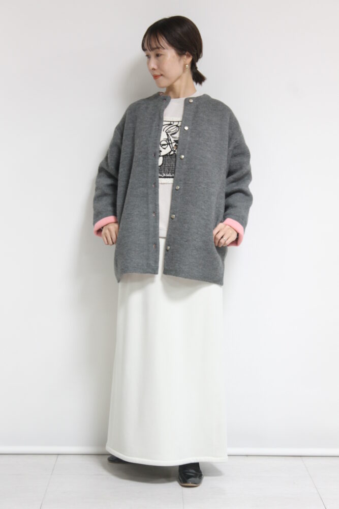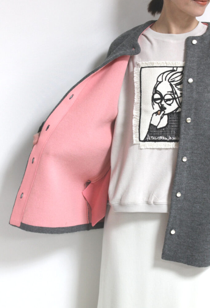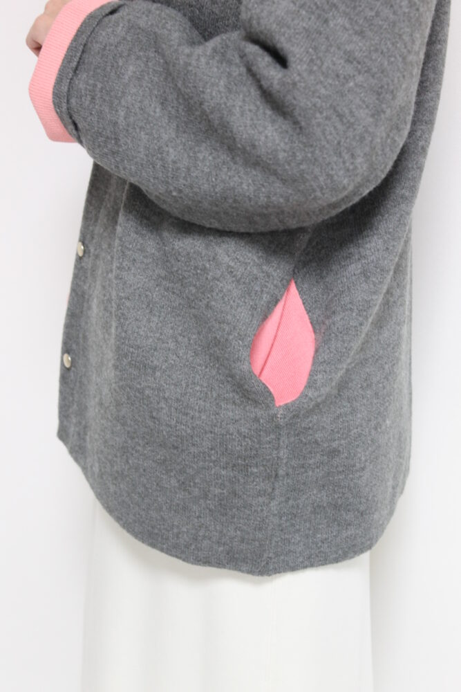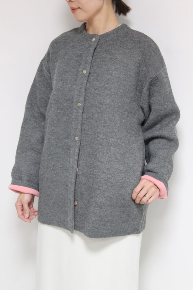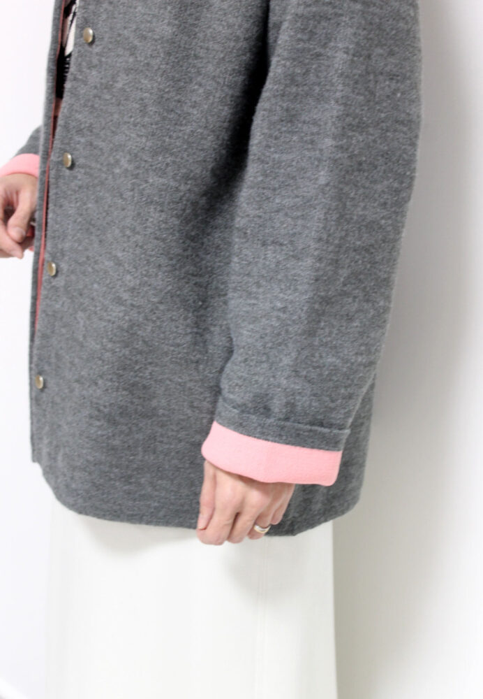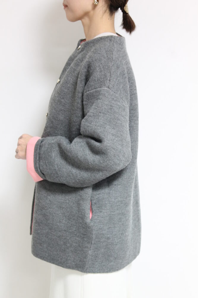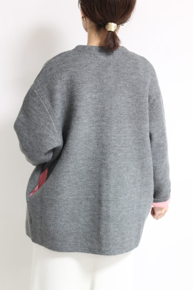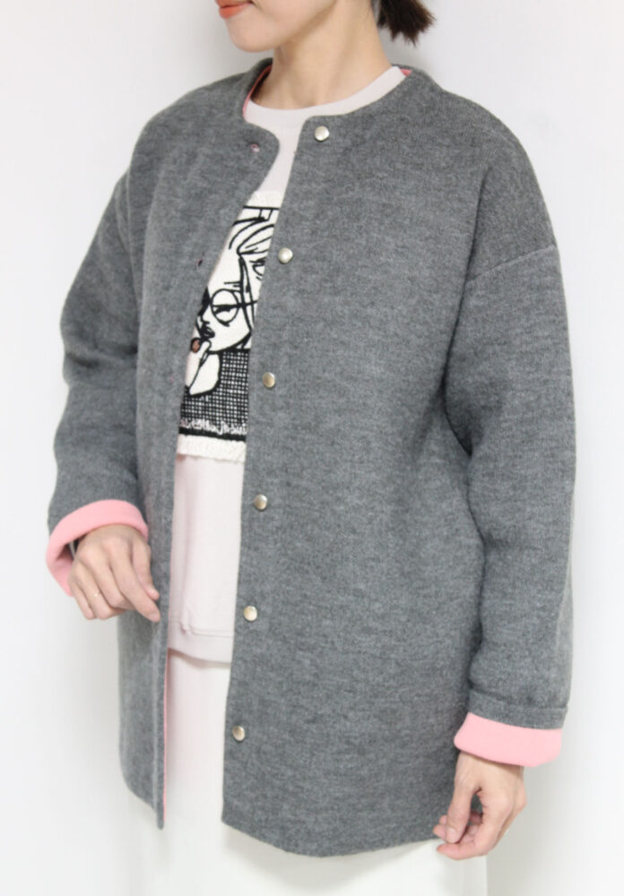 アンカルネ(Un carnet)ダブルフェイスニットコート/チャコールグレー×ピンク