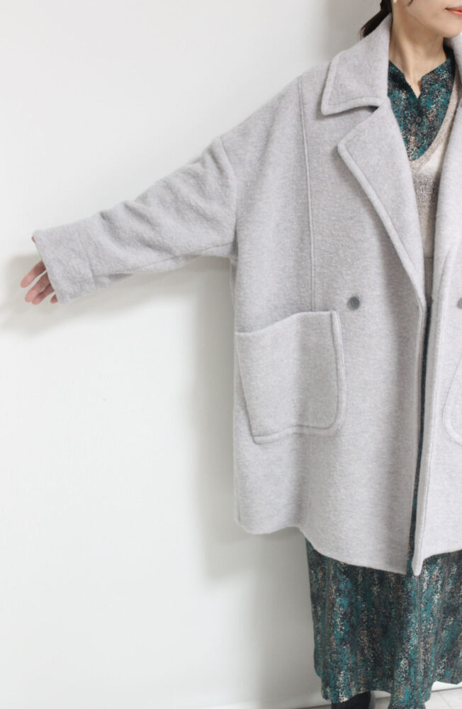 プライオリティ(PRIORITY)圧縮ニットドルマンコート/ライトグレー