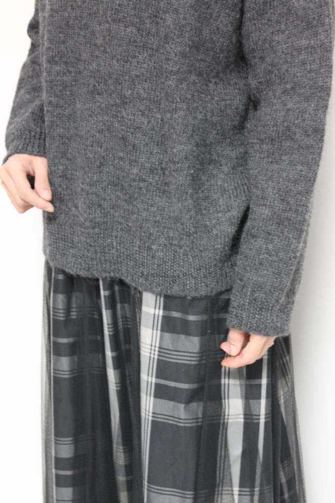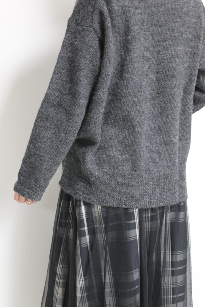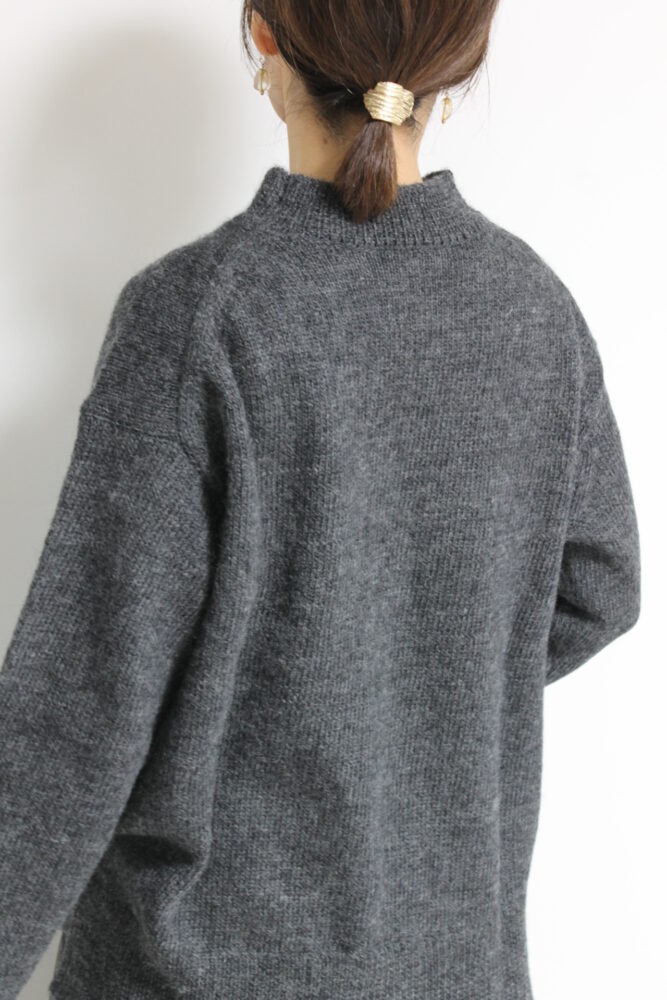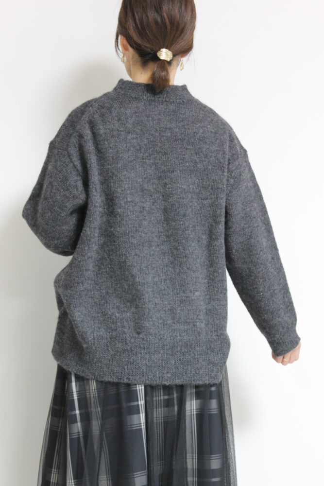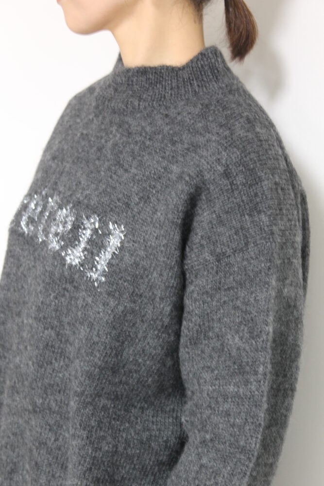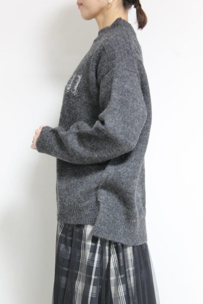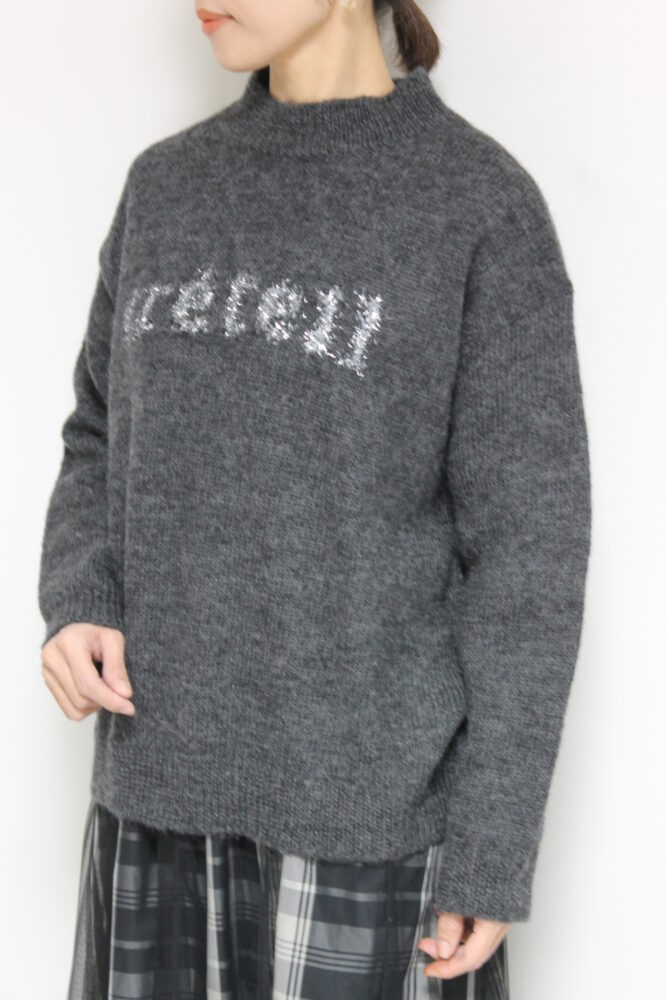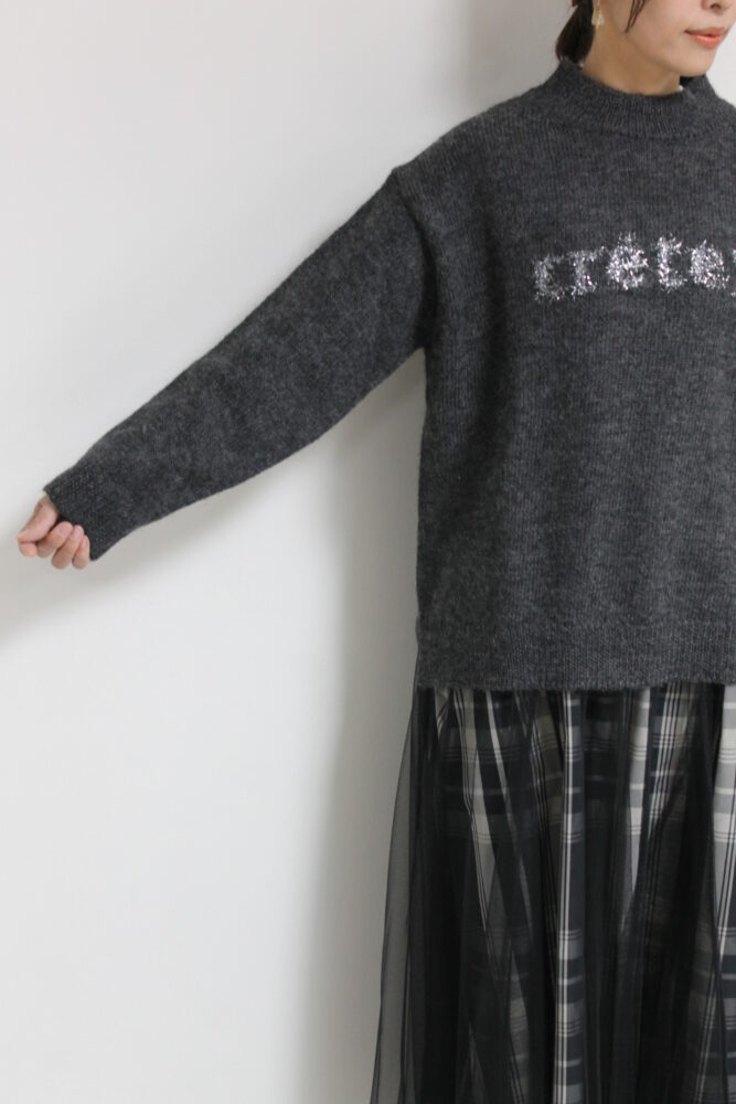 マリードール(MARIED’OR)ラメシャギーロゴボトルネックニット/チャコール杢