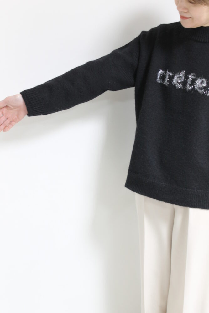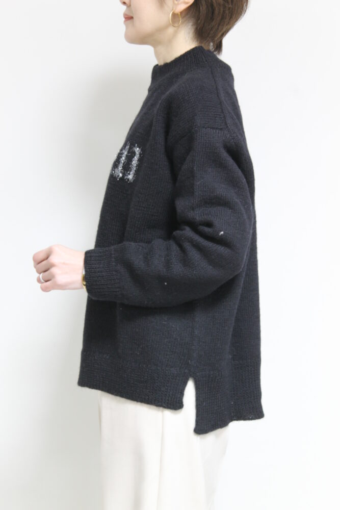 マリードール(MARIED’OR)ラメシャギーロゴボトルネックニット/ブラック