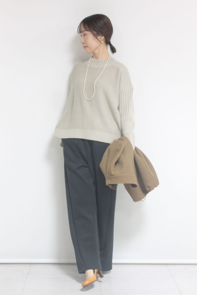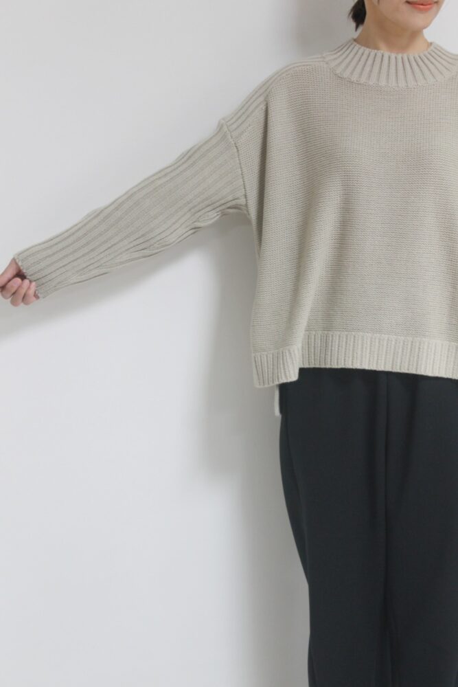 マリードール(MARIED’OR)5Gウール編地切替ハイネックプルオーバー/グレージュ