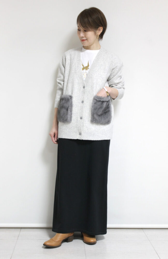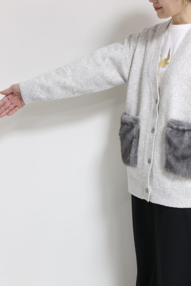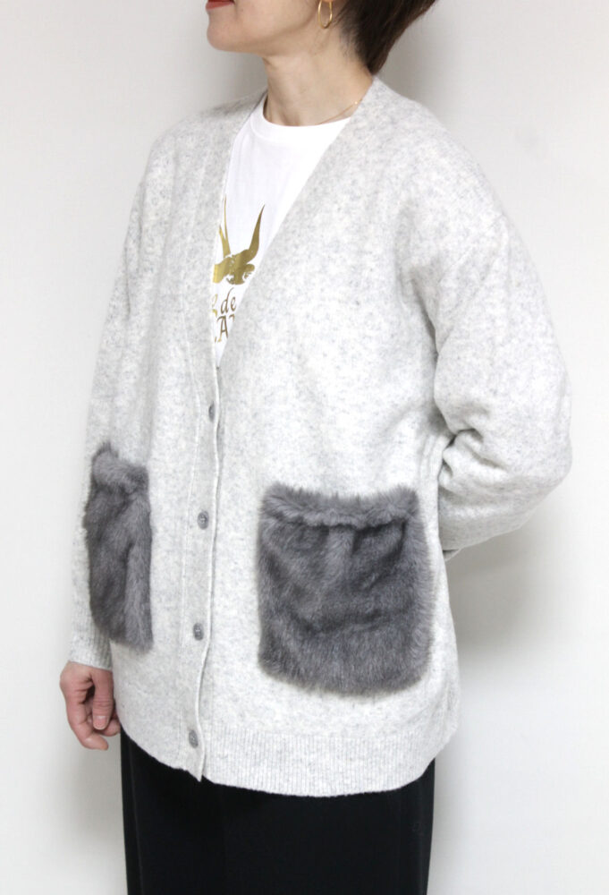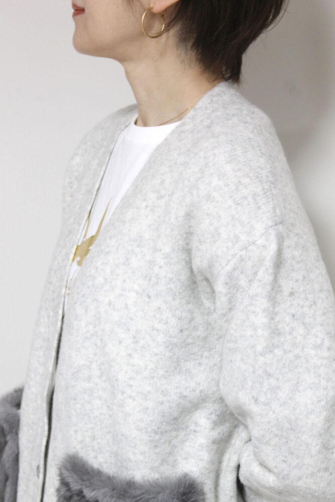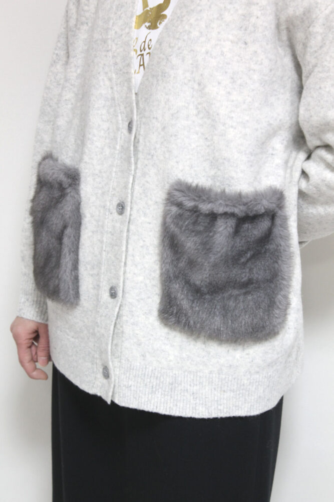 ロージー(ROSIEE)ファーポケットニットカーディガン/ライトグレー