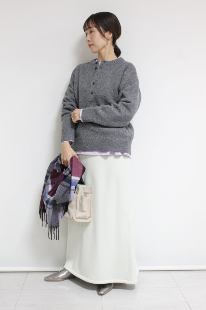 • フィルデフェール(FIL DE FER)アルパカ混ソフトスラブヘンリーネックP/O/チャコールグレー