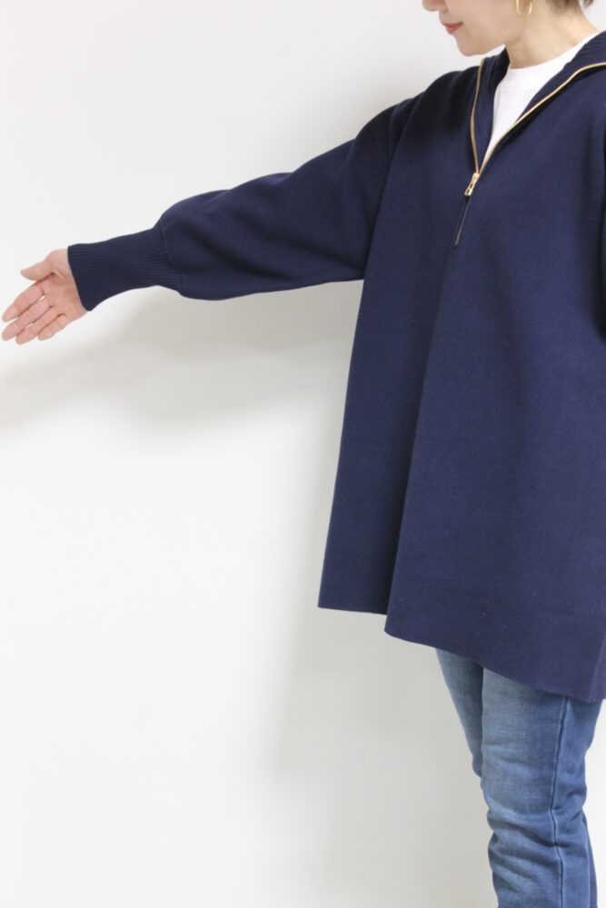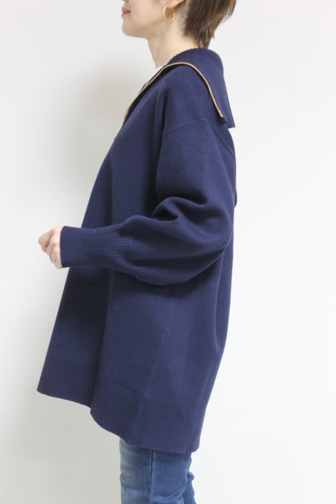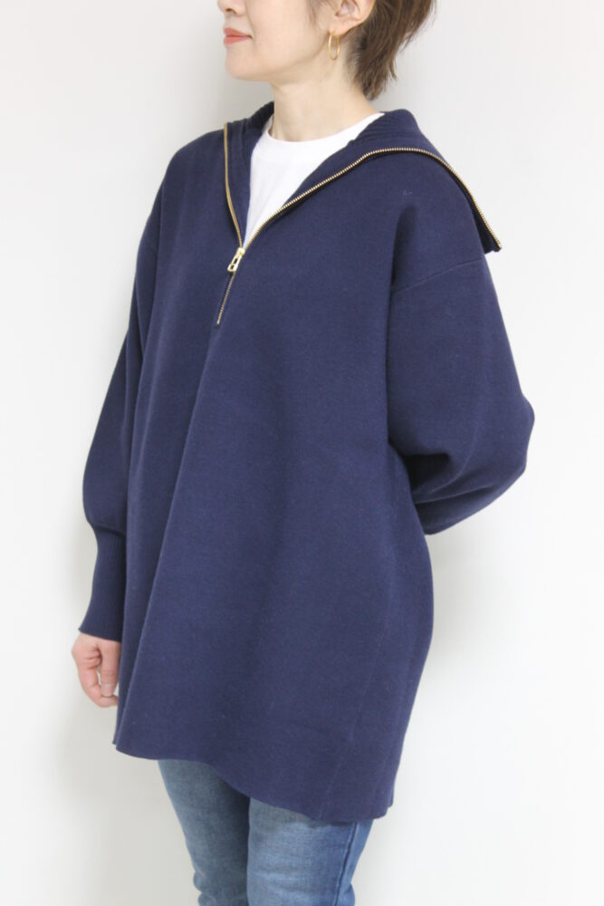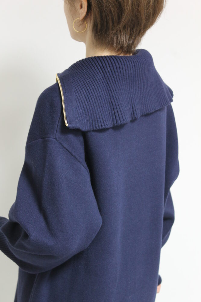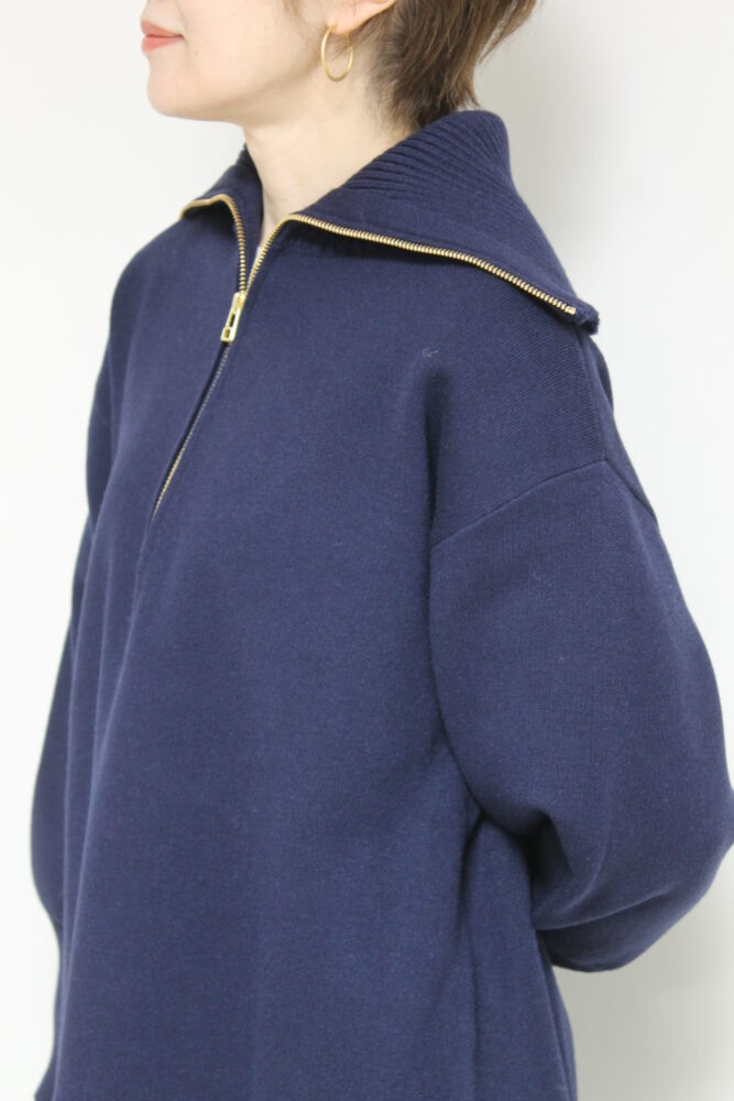 ディニテコリエ(Dignite Collier)ハーフジップミディ丈ニット/ネイビー