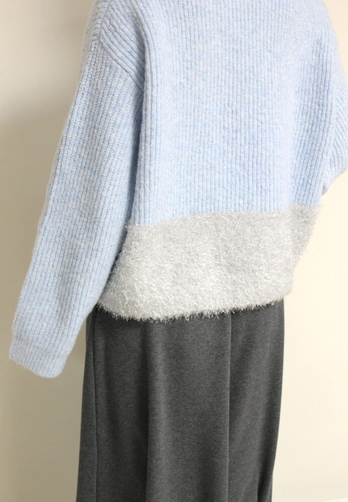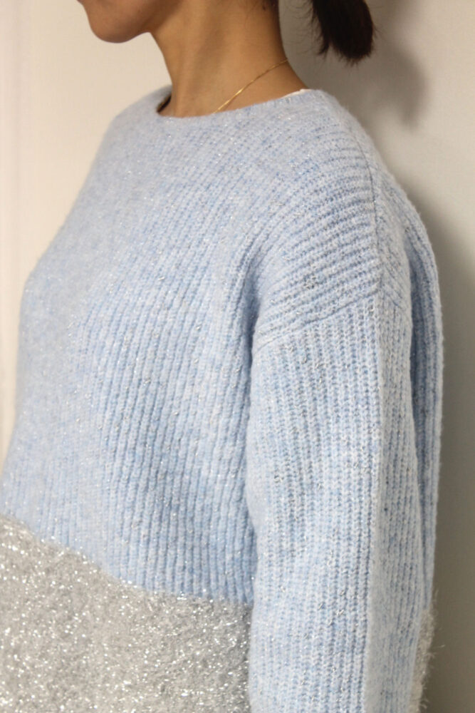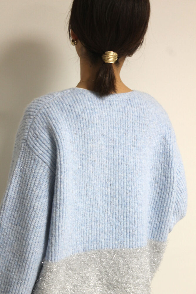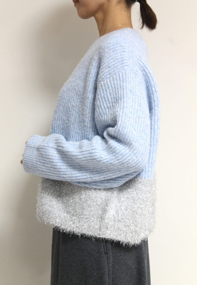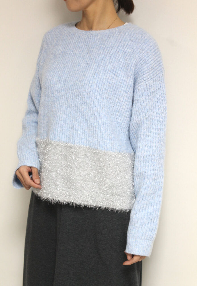 ロージー(ROSIEE)裾ラメシャギーニット/サックス×シルバー