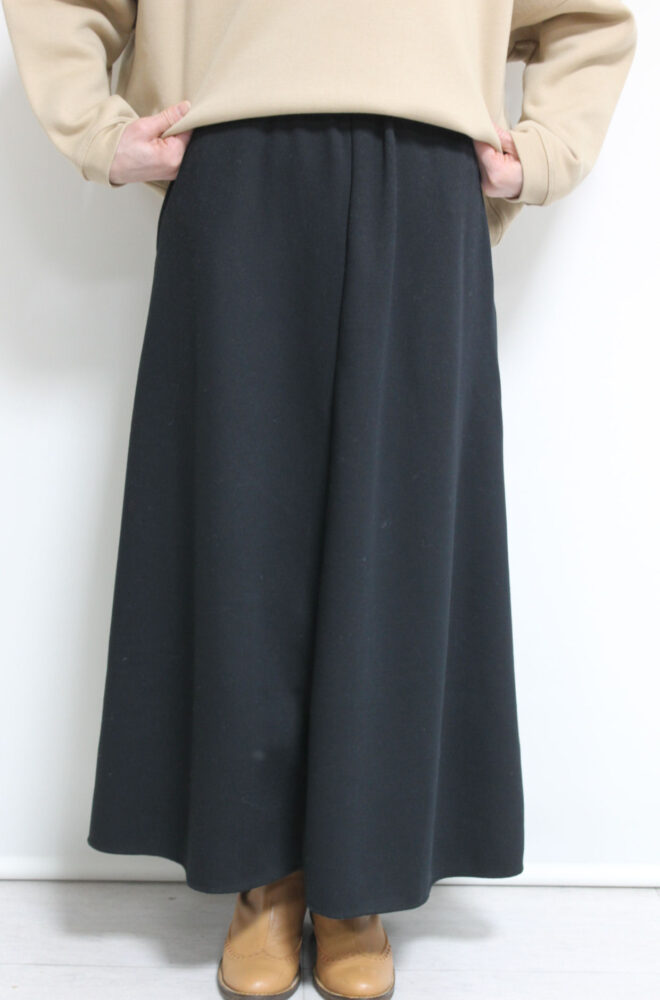 ディニテコリエ(Dignite Collier)ボンバースカート。単なる「あたたかスカート」ではなく、「裏起毛×スタイリッシュ×ウエストゴム&ストレッチ」。まるで毛布のようなふかふかした素材で着ぶくれして見えない美シルエット☆どんなスタイリングにも使いやすく、寒い日のお出かけもこれなら安心です。