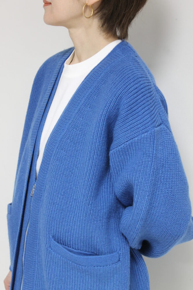 ディニテコリエ(Dignite Collier)ジップニットカーディガン/ブルー