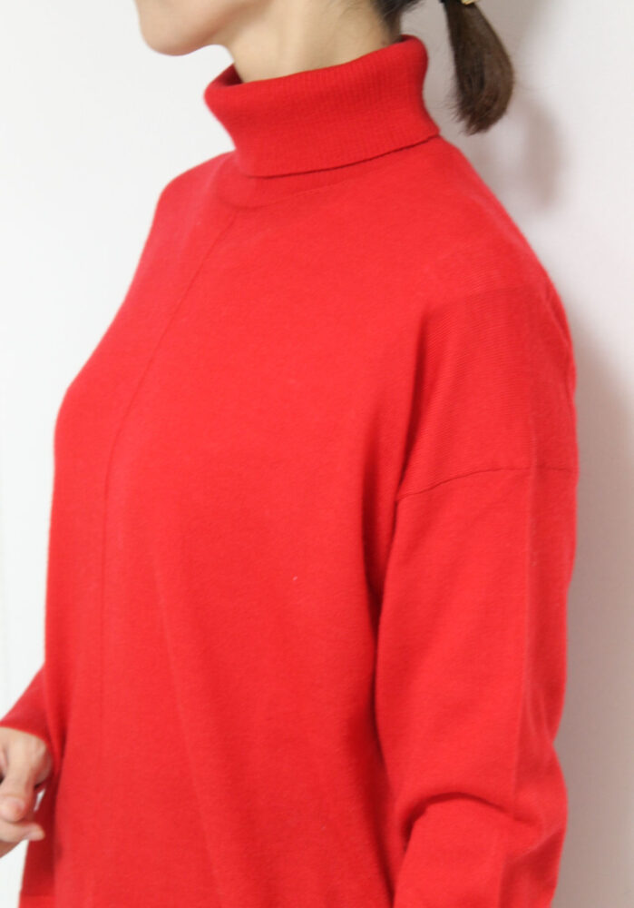パシオーネ(PASSIONE)タートルネックサイドスリットニットプルオーバー/レッド