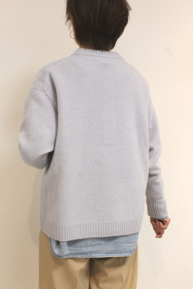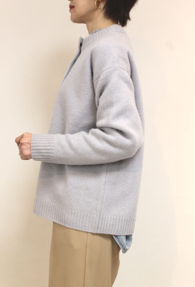 ディニテコリエ(Dignite Collier)ウオッシャブルウールフロントボタンニット/シルバーグレー