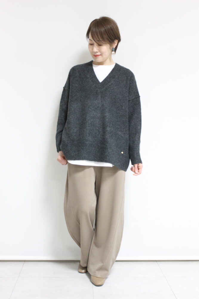 ディニテコリエ(Dignite Collier)インナーセットVネックプルオーバー/チャコール