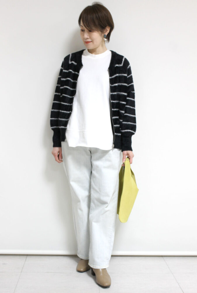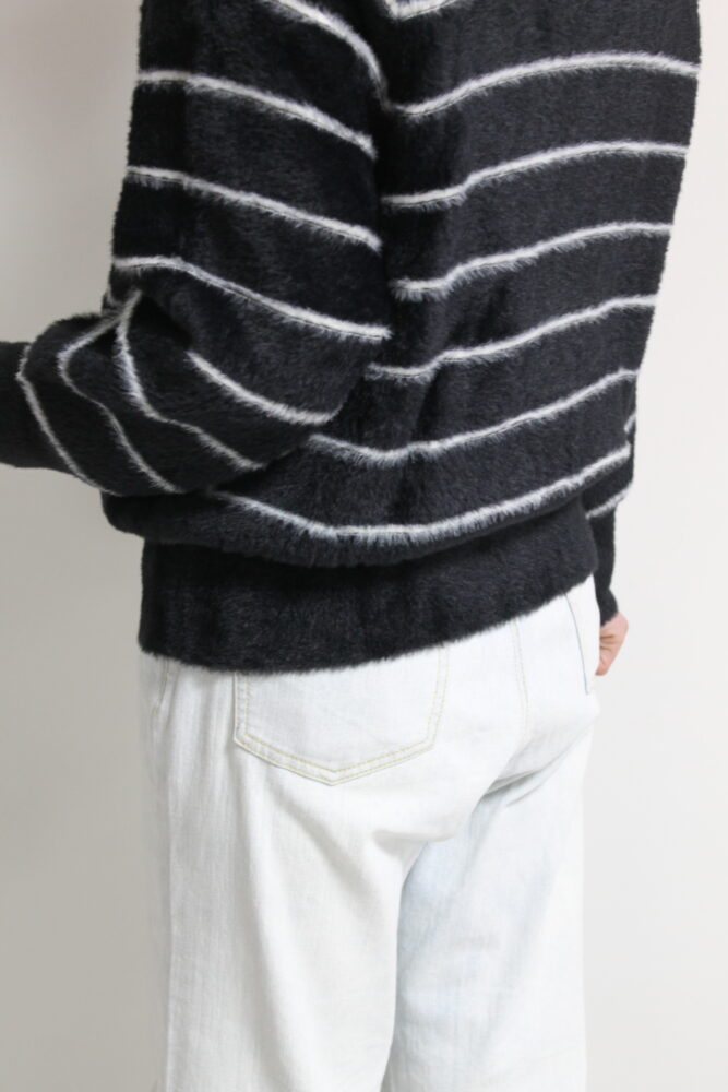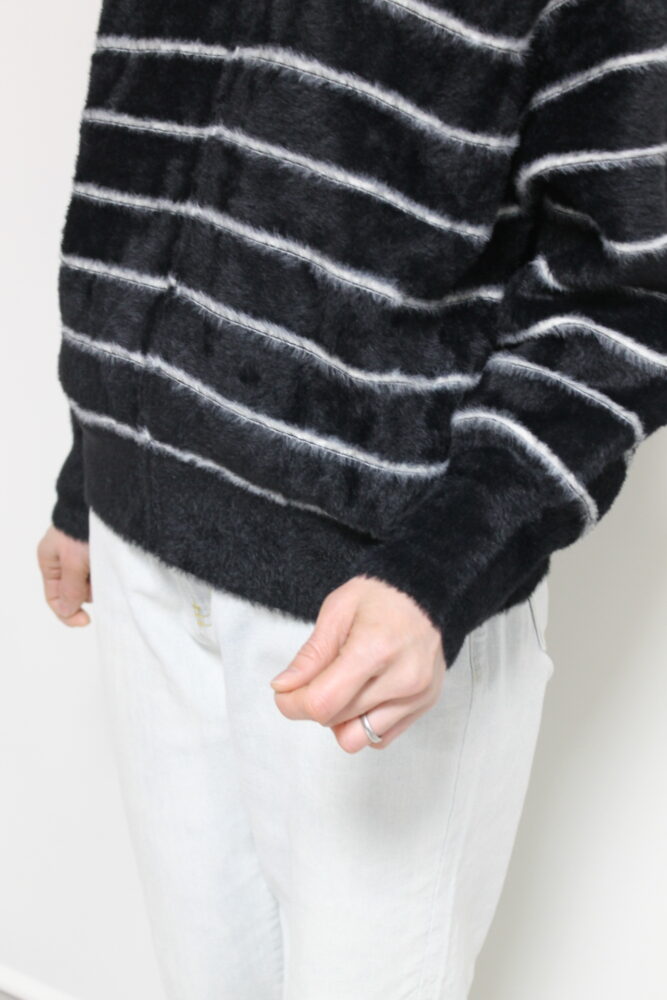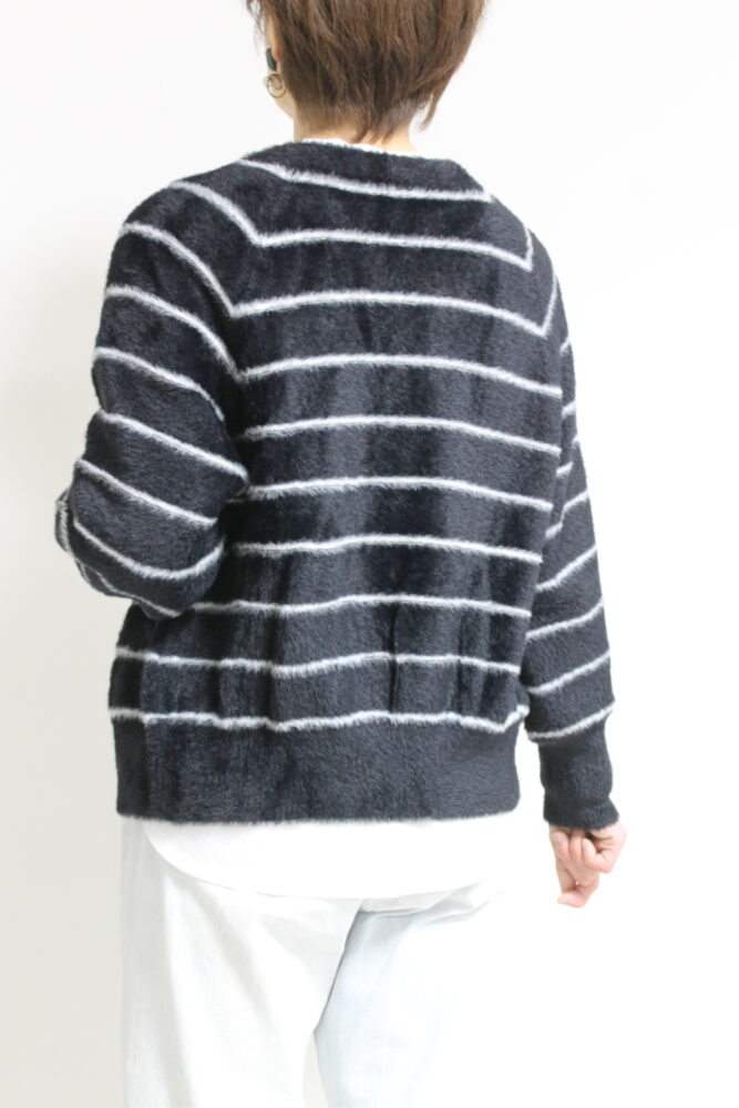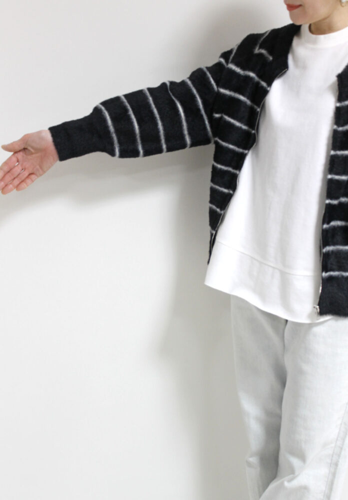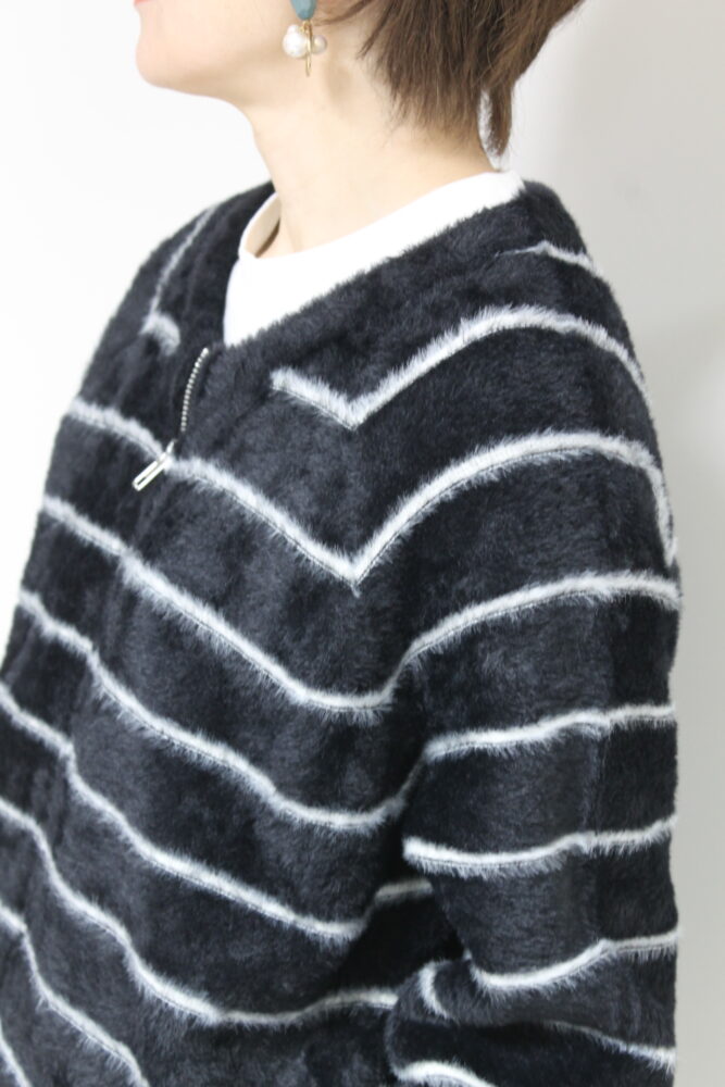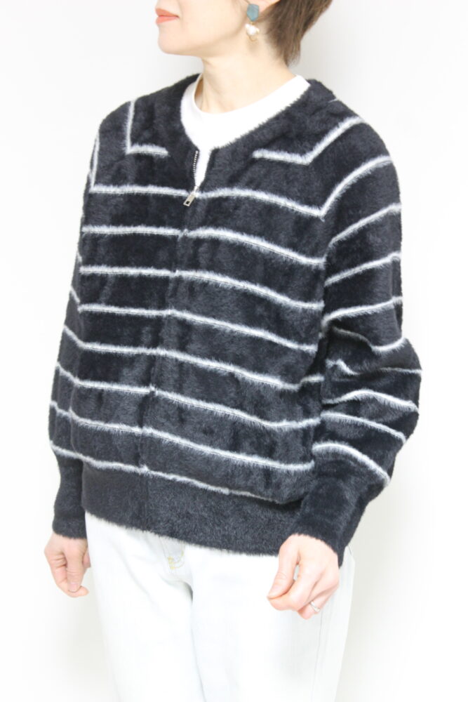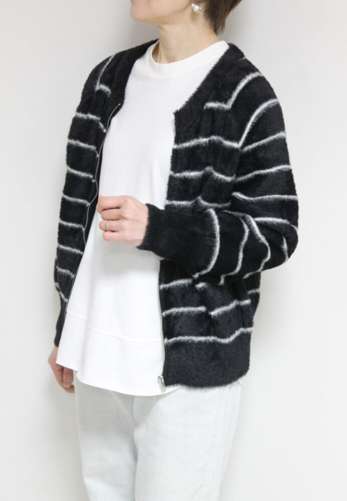 クリスモンテス(Chris montez)モコモコボーダーZIPカーディガン/ブラック