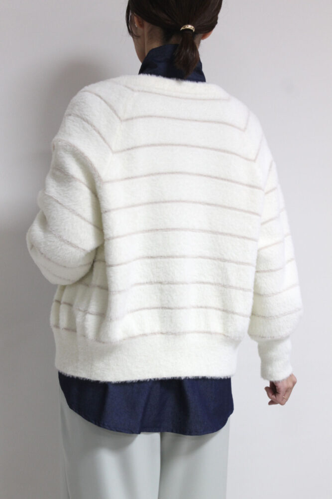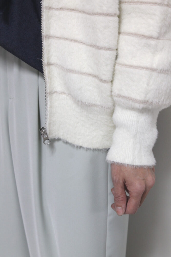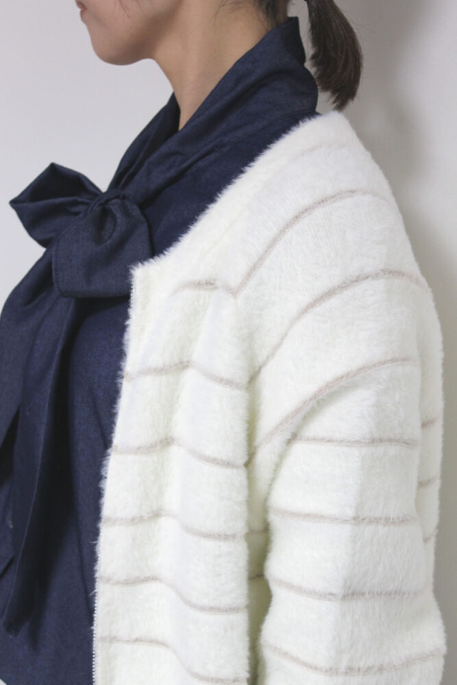 クリスモンテス(Chris montez)モコモコボーダーZIPカーディガン/アイボリー