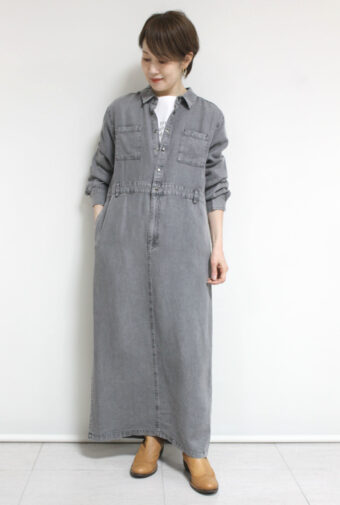 ロージー(ROSIEE)テンセルデニムワンピース。テンセル100%の素材を使用したしっとり柔らかな風合いが特徴。ウォッシュ加工を施したカジュアルなカラーですが、とろみ感と落ち感のある素材なので女性らしい印象に。ウエスト周りはつなぎ風のデザインにして、甘さと辛さのバランスが面白いデニムワンピースです。 高めのウエスト位置でスタイルアップ効果もあります。 詳細はブログで