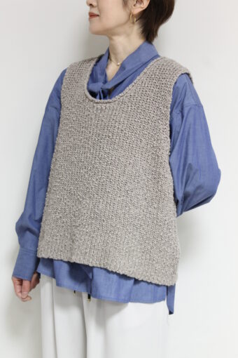 「重ね着が映える」ロージー(ROSIEE)スラブヤーンニットベスト/ベージュ