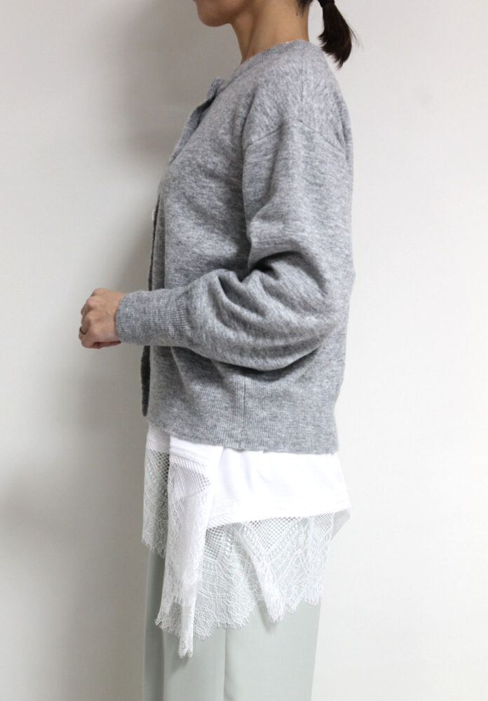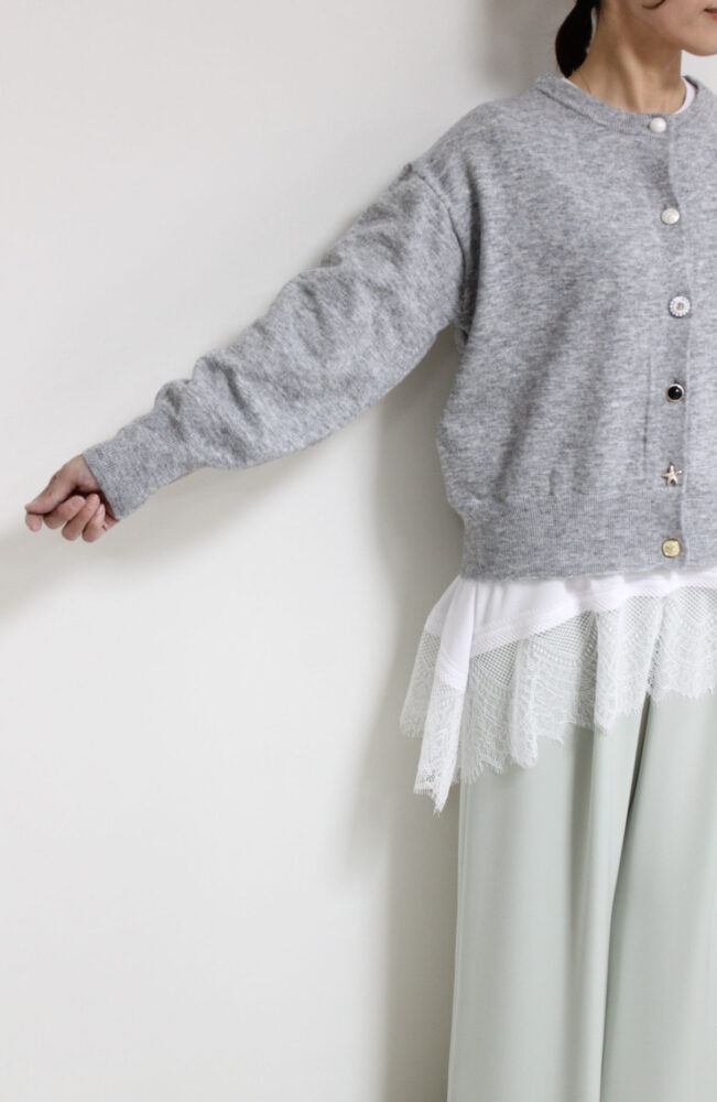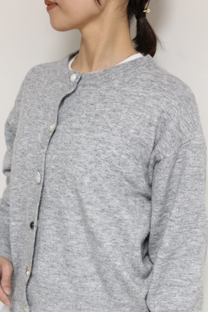 ルクールブラン(le.coeur blanc)ビジューボタンカーディガン/ライトグレー