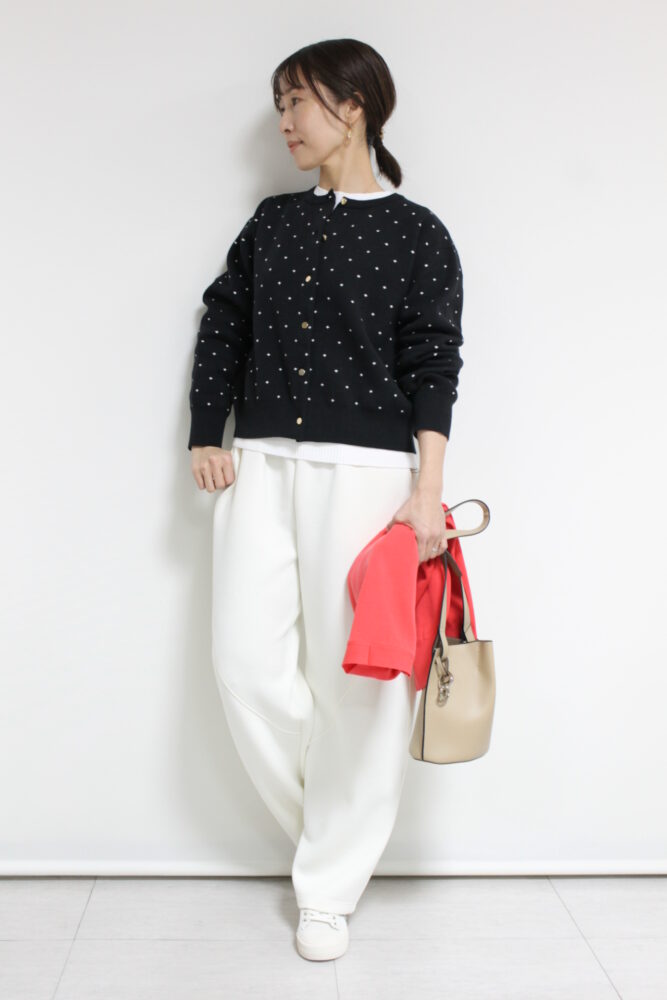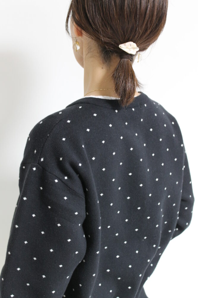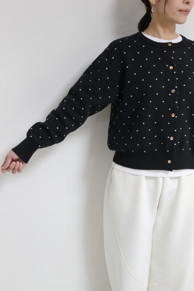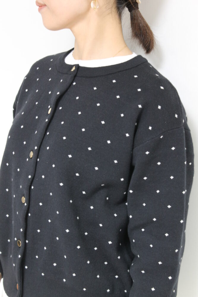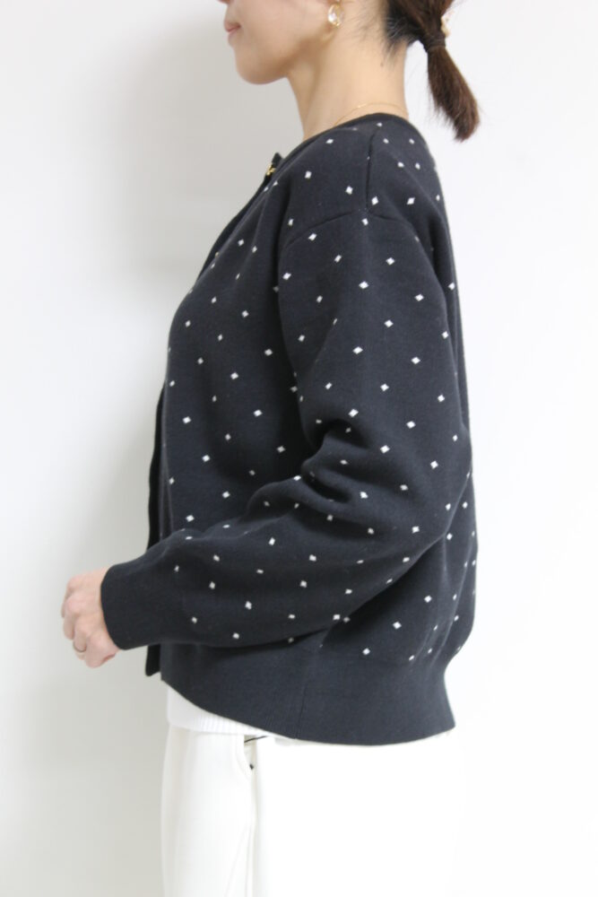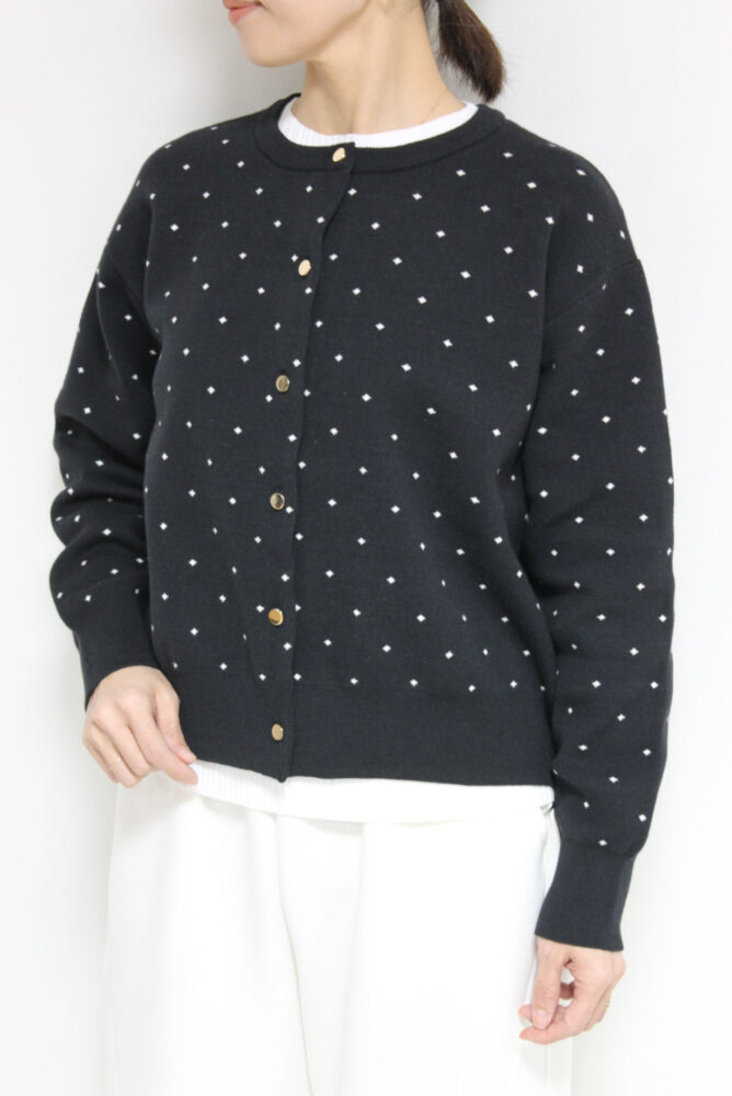 ルクールブラン(le.coeur blanc)ドットジャガードニットカーディガン/ブラック柄