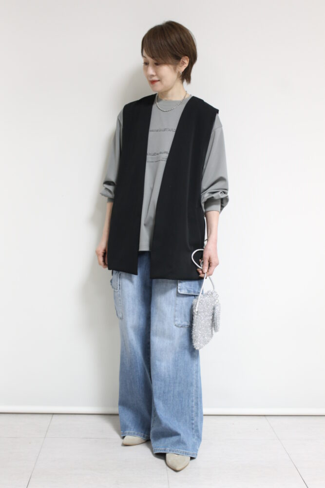 アンカルネ(Un carnet)ミドル丈ジレ/ブラック