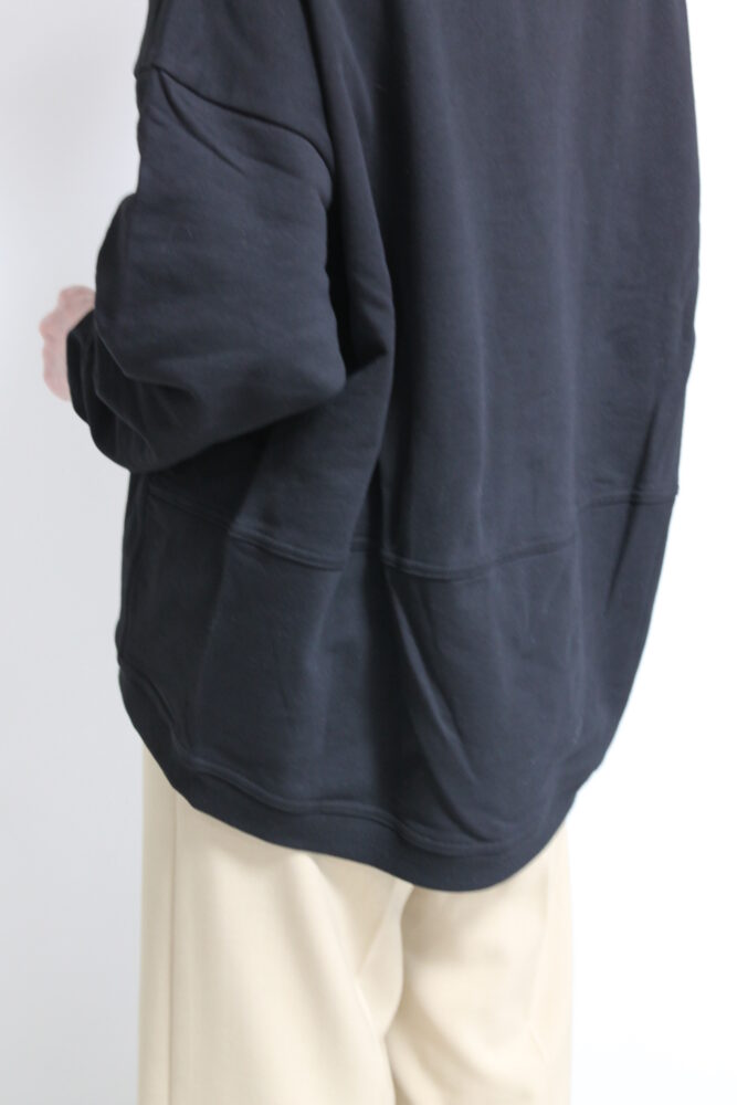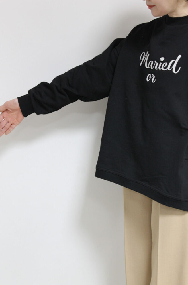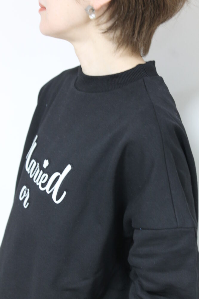厚みがあって春先から着れるマリードール(MARIED'OR)ロゴスウェット。レザーを貼り付けた立体的なロゴは目を惹くアクセント。身頃や袖丈にゆとりのあるサイジングで着るだけでこなれるバランスになります◎