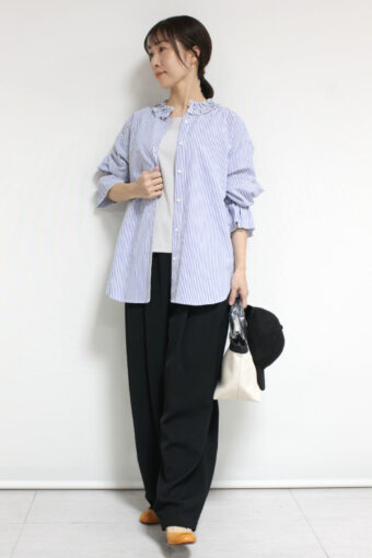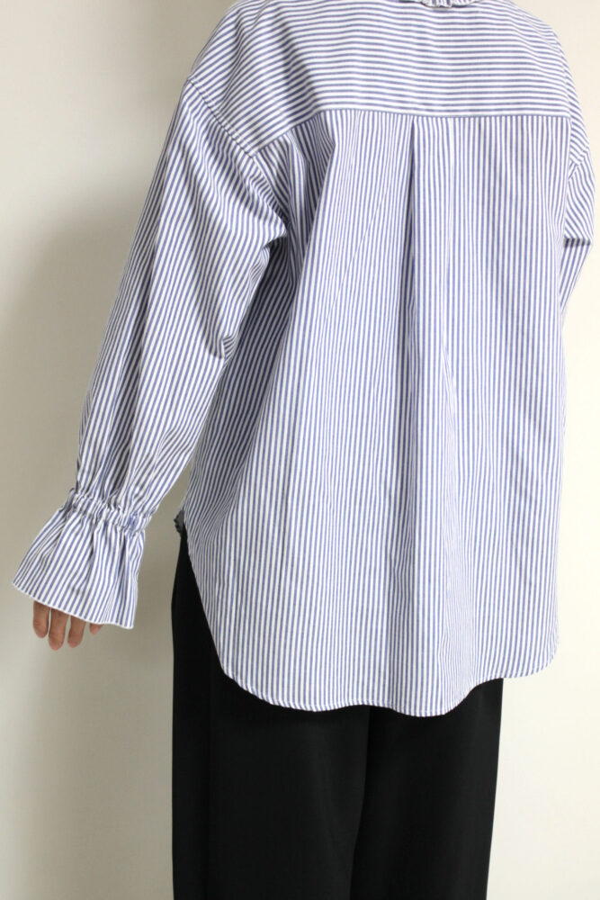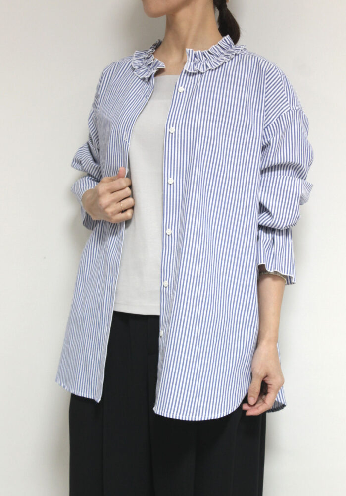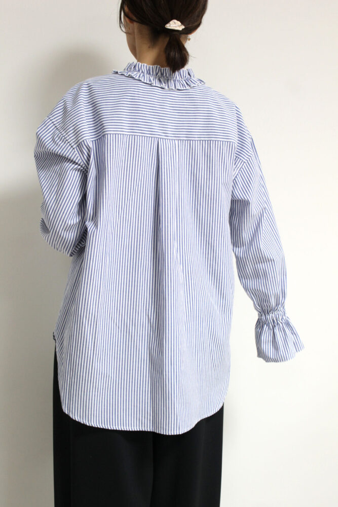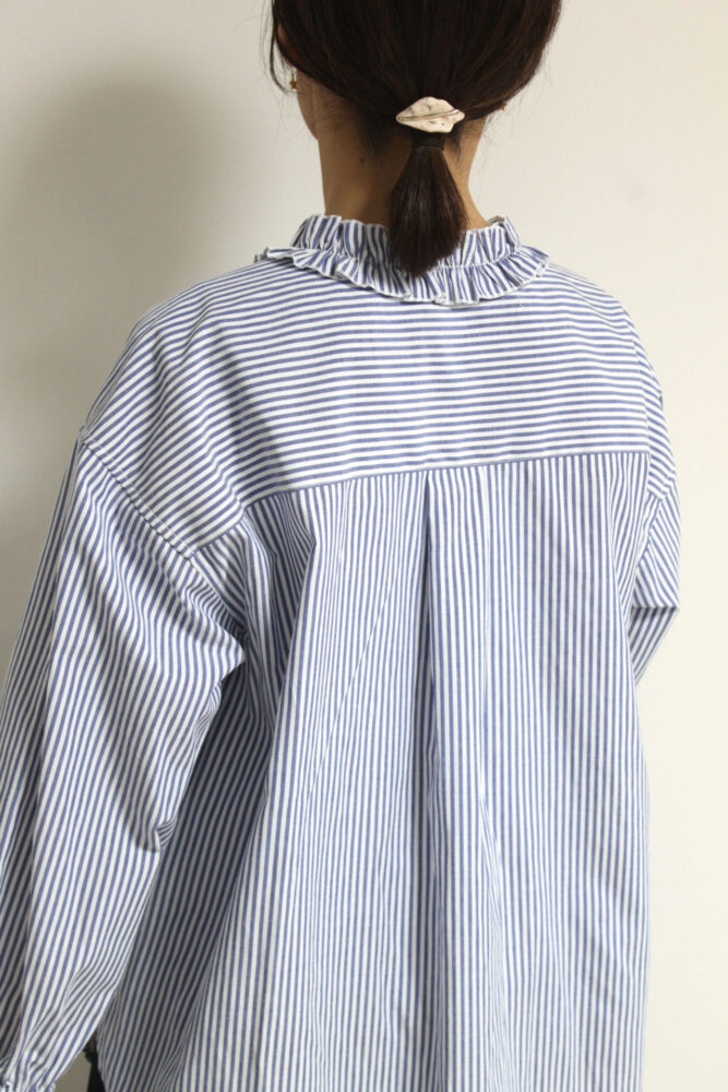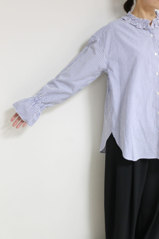 ルクールブラン(le.coeur blanc)フリルカラーブラウス/ネイビーストライプ