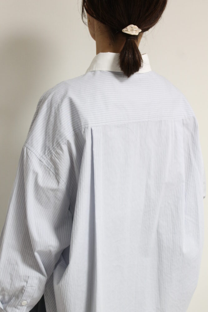 ディニテコリエ(Dignite Collier)ストライプ刺繍クレリックシャツ/グレー系