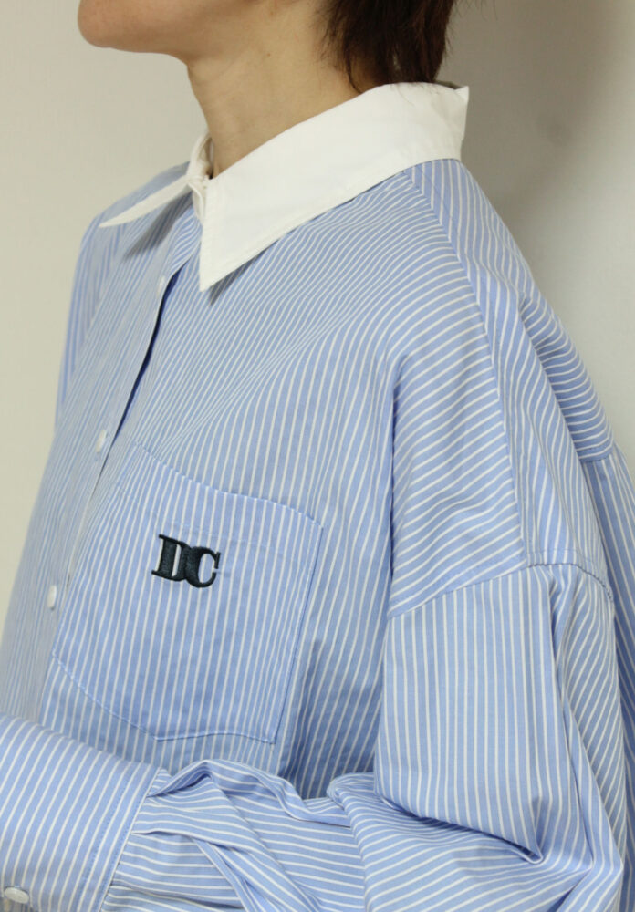 ディニテコリエ(Dignite Collier)ストライプ刺繍クレリックシャツ/ブルー系