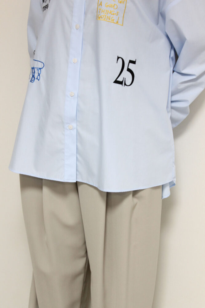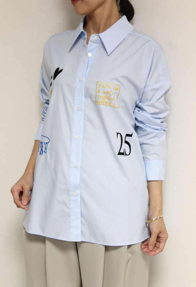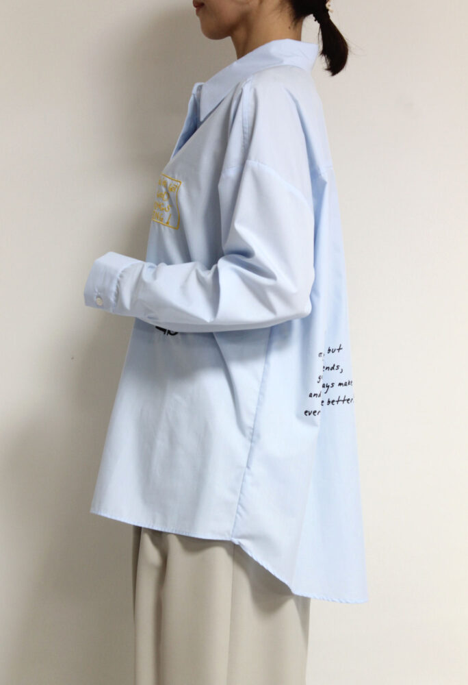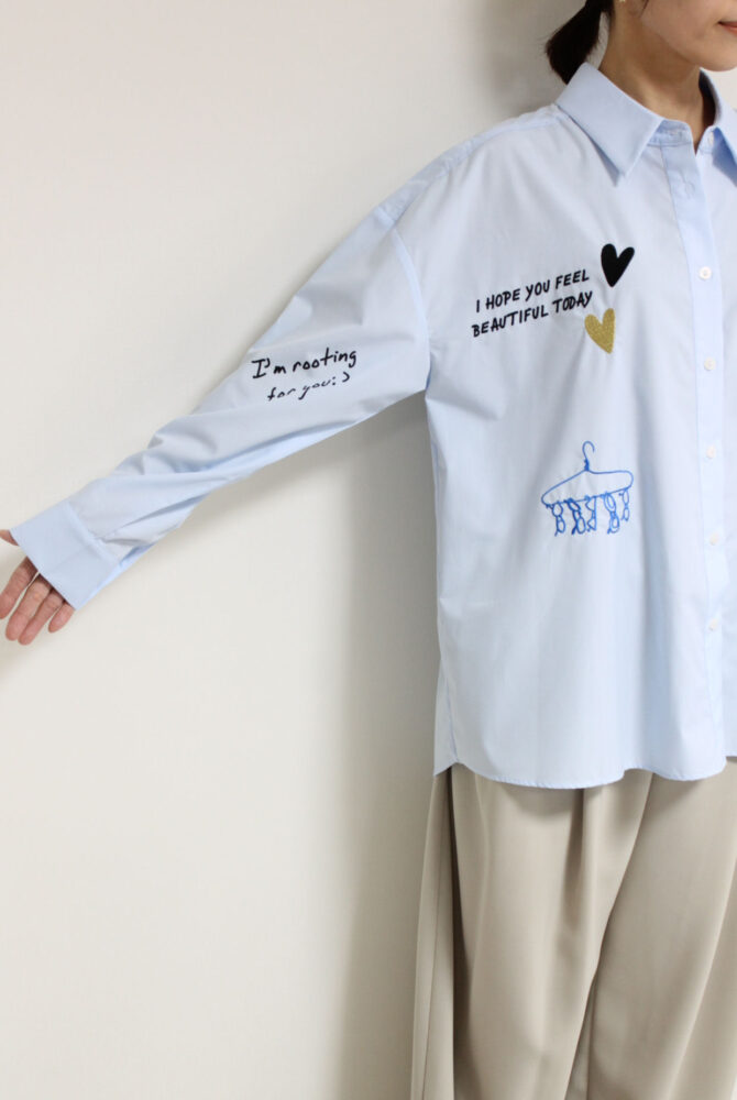 ロージー(ROSIEE)レタリング刺繍ブラウス/サックス
