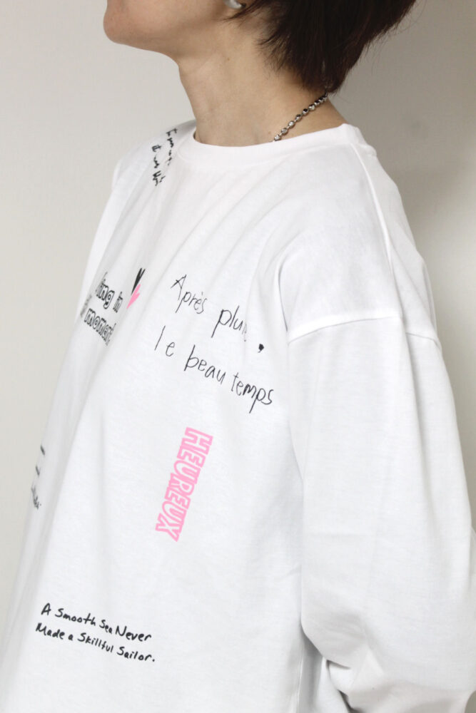 落書き風のプリントが目を引くロージー(ROSIEE)のレタリングロングTシャツ。存在感のあるデザインながらベースはシンプルなクルーネックで着やすさも抜群です。デニムやワイドパンツと合わせてラフに、スカートやジャケットを合わせればぐっと上品な印象に。一枚で着ても、レイヤードしてもサマになる――着こなしの幅の広さが魅力です◎