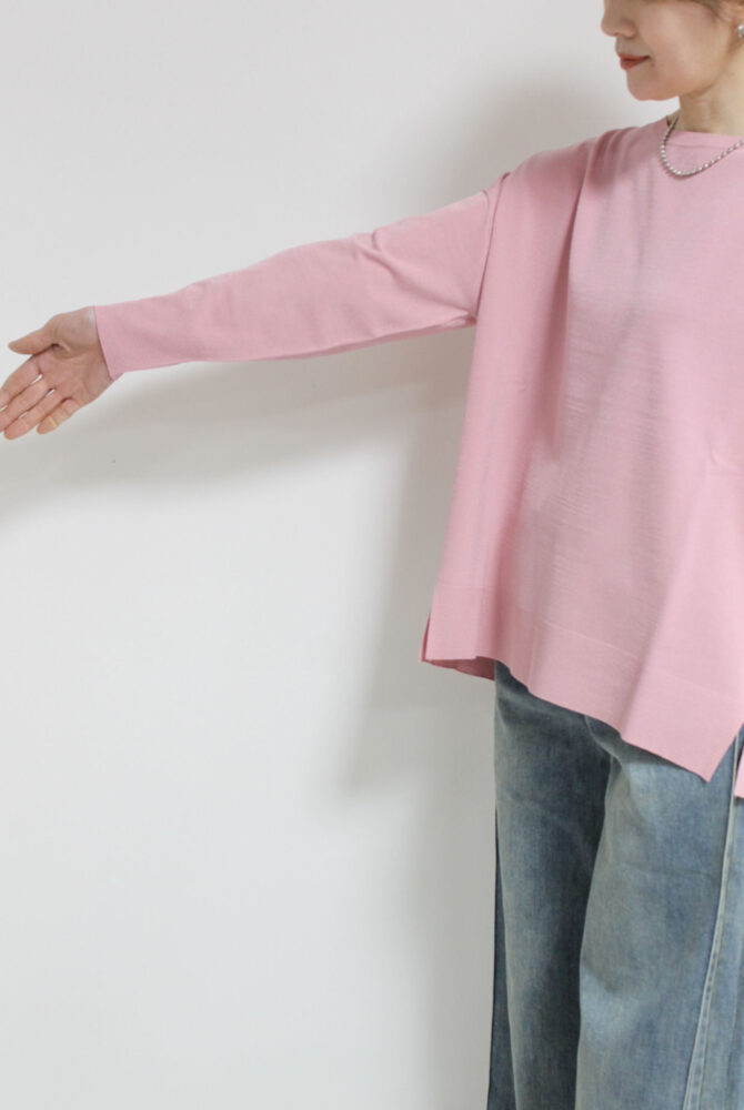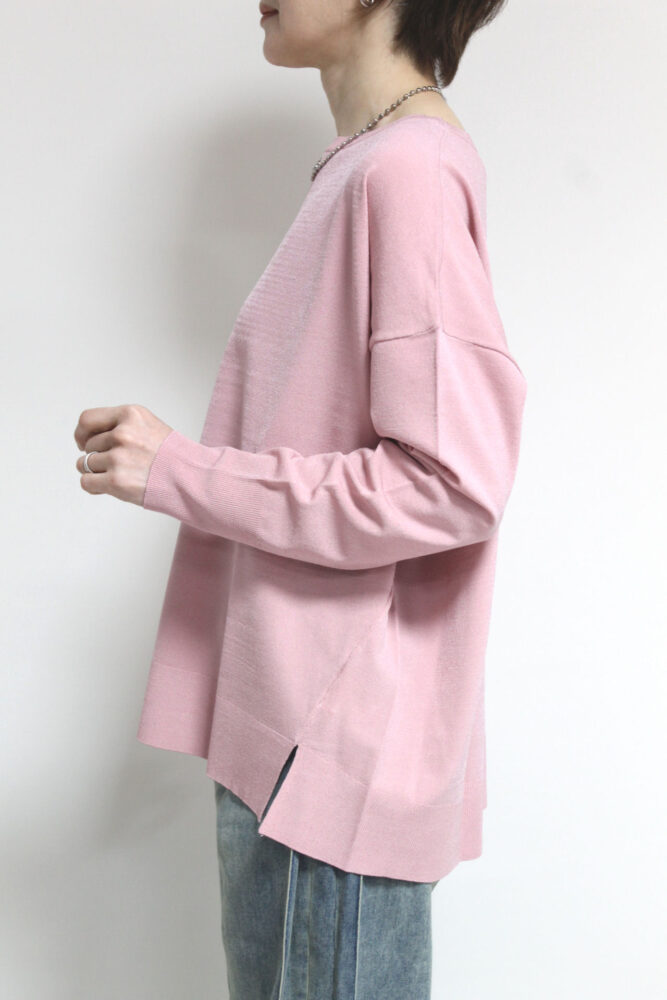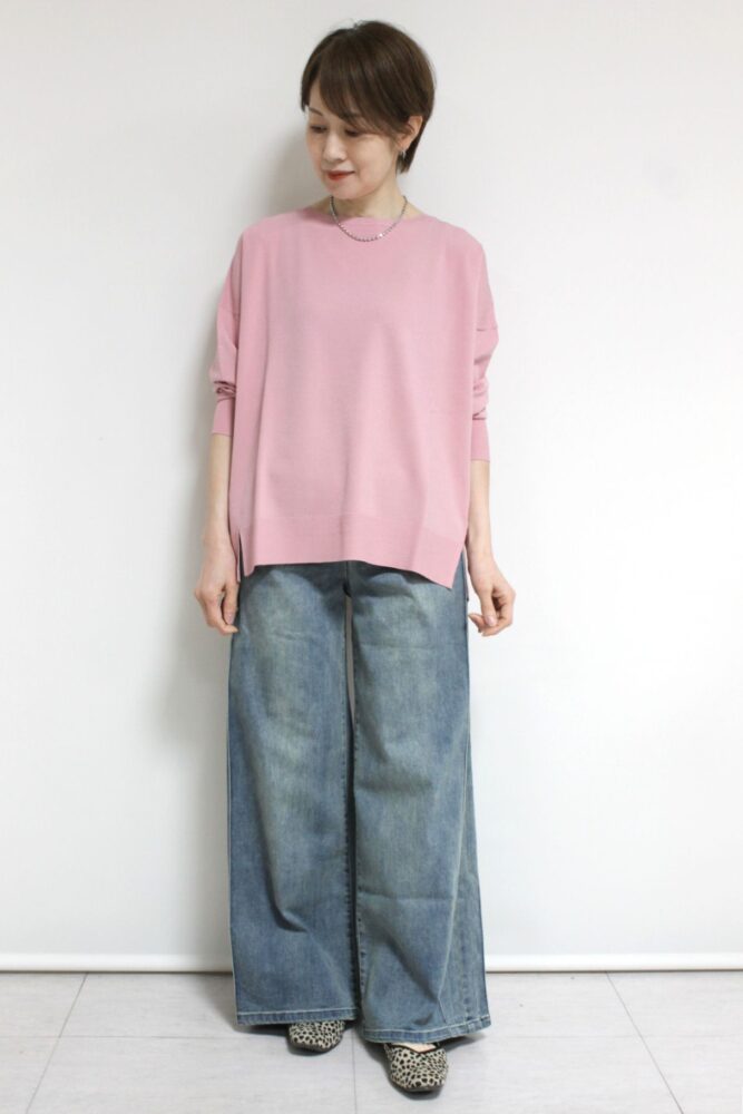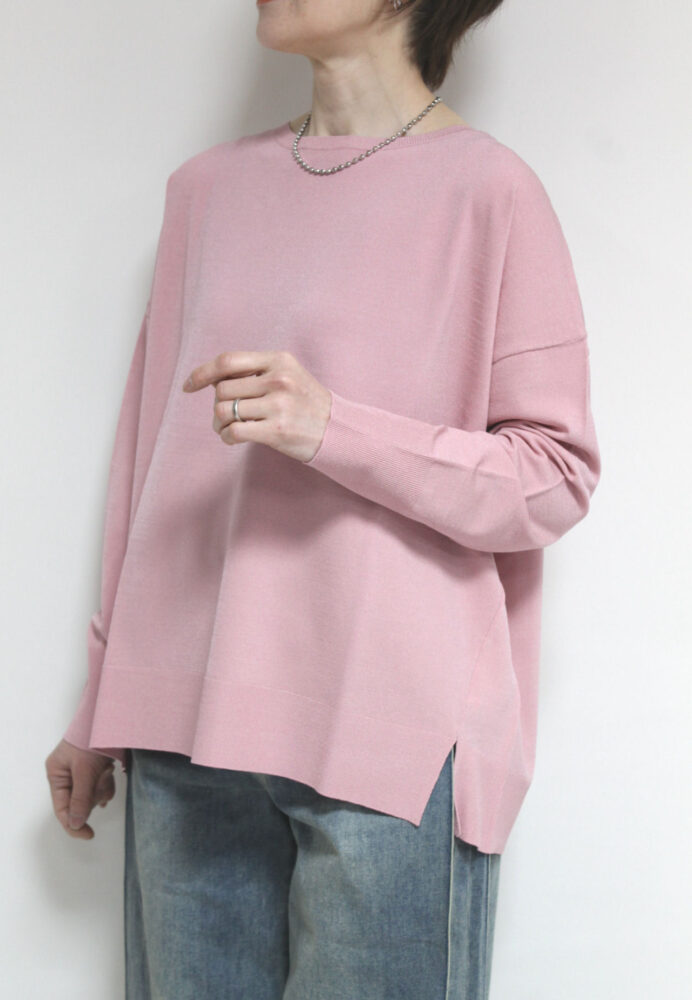 マリードール(MARIED'OR)の春にぴったりのボートネックワイドプルオーバー。繊細でなめらかな編み地が上品な印象を与え、軽やかな着心地で季節の変わり目にも快適に着ていただけます。ボートネックは首元を美しく見せて抜け感を演出。ゆったりとしたワイドシルエットで体型カバーも叶い、パンツにもスカートにも好相性。デイリーからきれいめスタイルまで幅広く活躍する一枚です◎