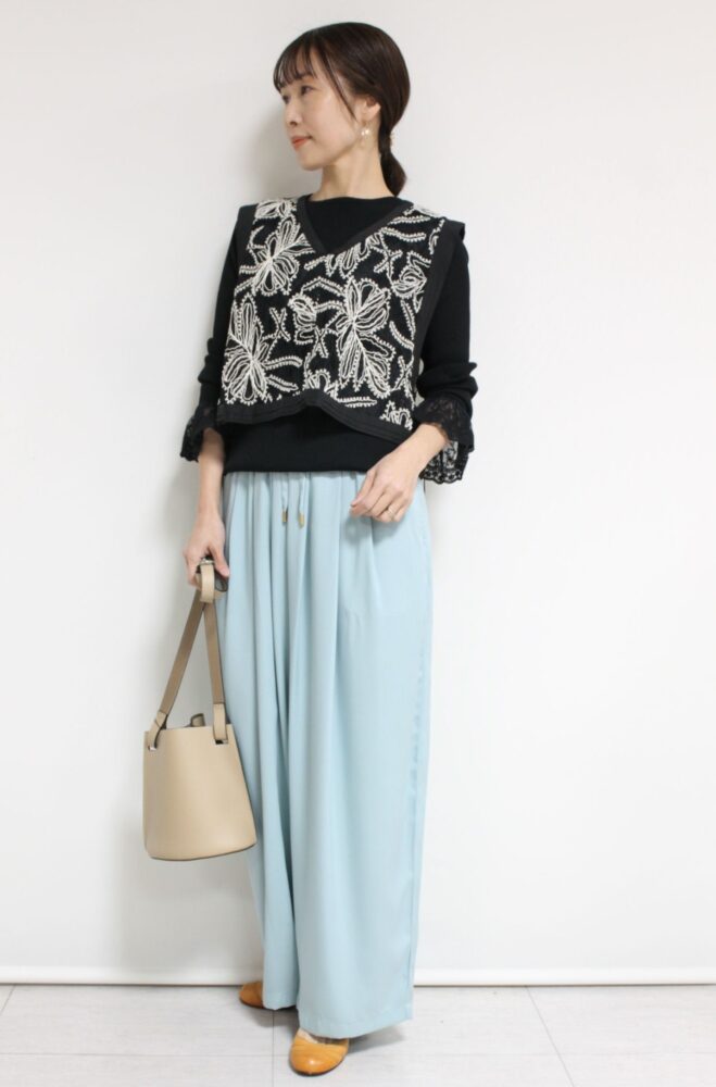 マリードール(MARIED’OR)ドロストワイドパンツ/サックス