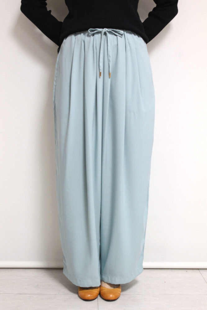 淡く爽やかなSAXカラー。マリードール(MARIED'OR)からなめらかな肌触りのドロストパンツが入荷しました。ウエストはドローストリングで調節可能、ゆとりのあるシルエットで動きやすく、デイリーからリラックススタイルまで幅広く対応。軽やかで落ち感のある素材が上品さを演出し、季節の変わり目にも活躍する一枚です◎