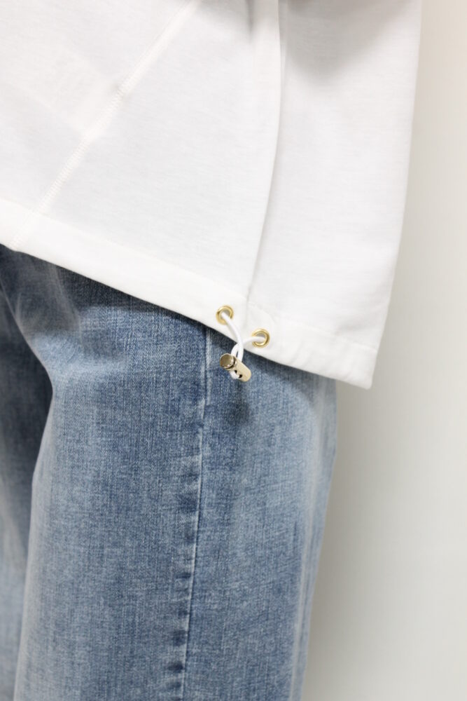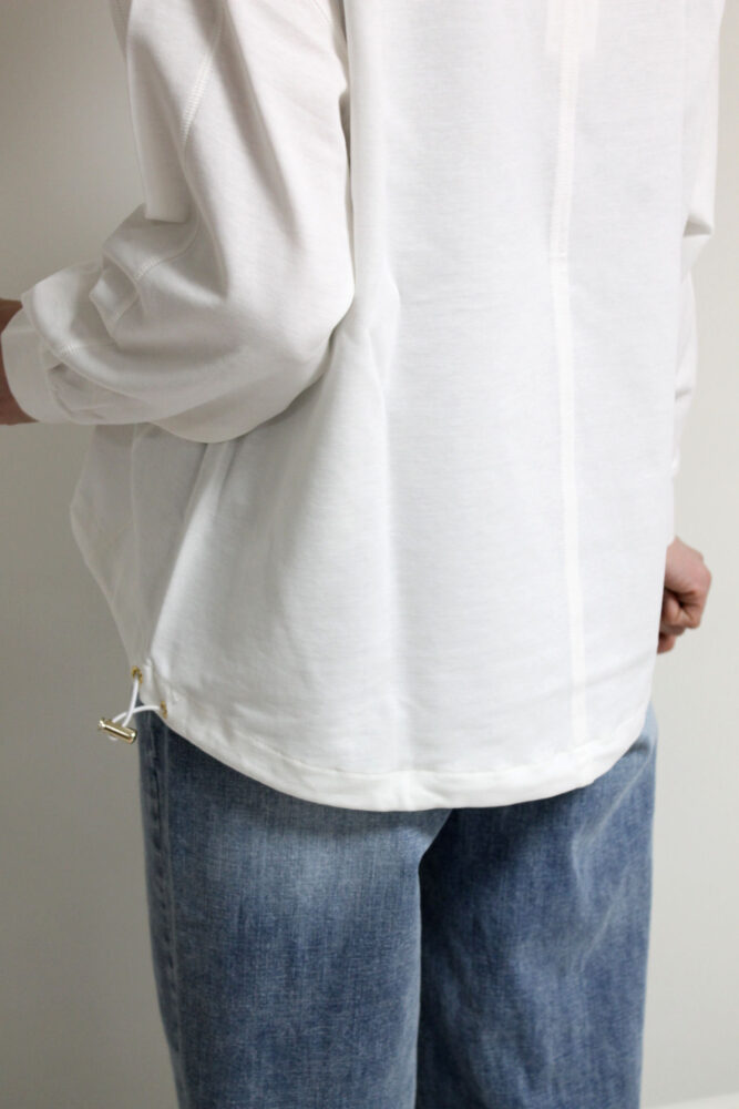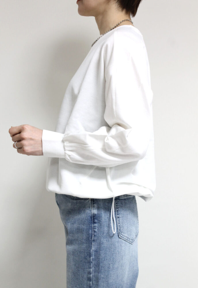 コットンナイロン素材を使用したアンカルネ(Un carnet)の裾ドロストカットソー。コットンのやわらかさにナイロンの軽さと丈夫さを兼ね備えこれからの時期に快適な着心地を叶えます。裾のドロストでシルエットの変化を楽しめ、きゅっと絞ればすっきりとした印象に。パンツにもスカートにも合わせやすくデイリーに活躍する一枚です◎