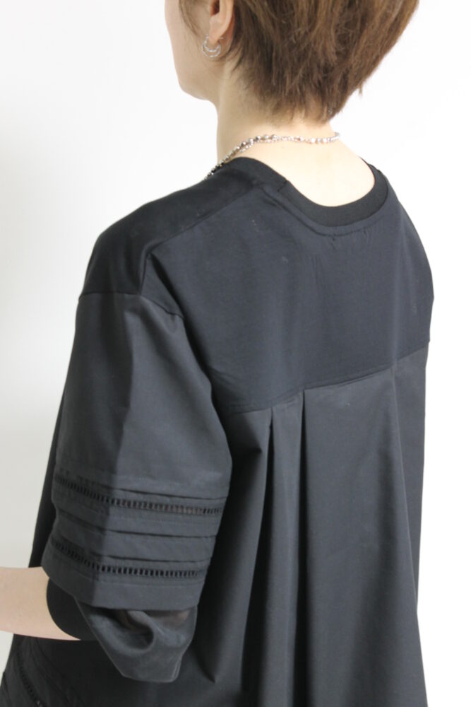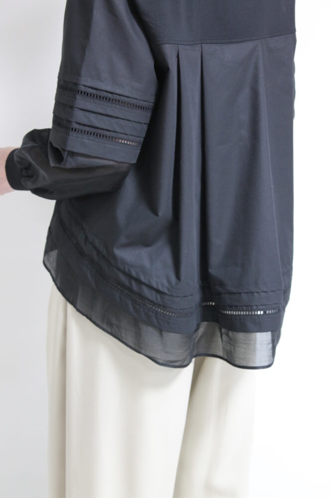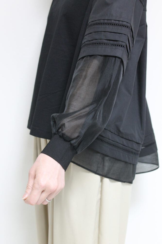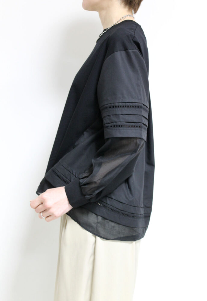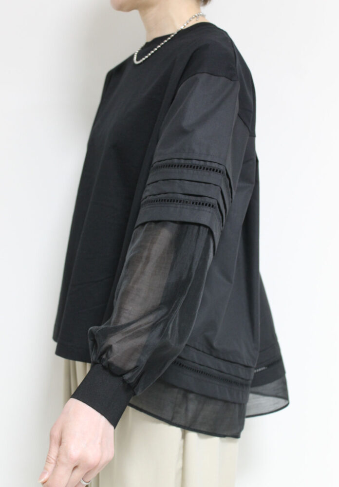 アンカルネ(Un carnet)タック+はしごレースシアースリーブプルオーバー/ブラック