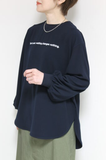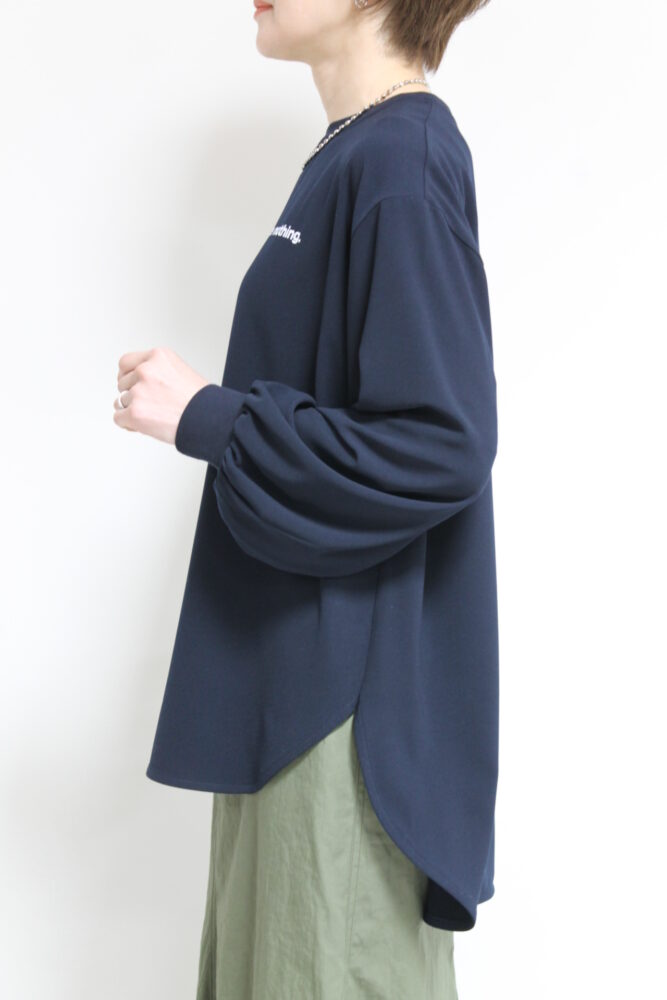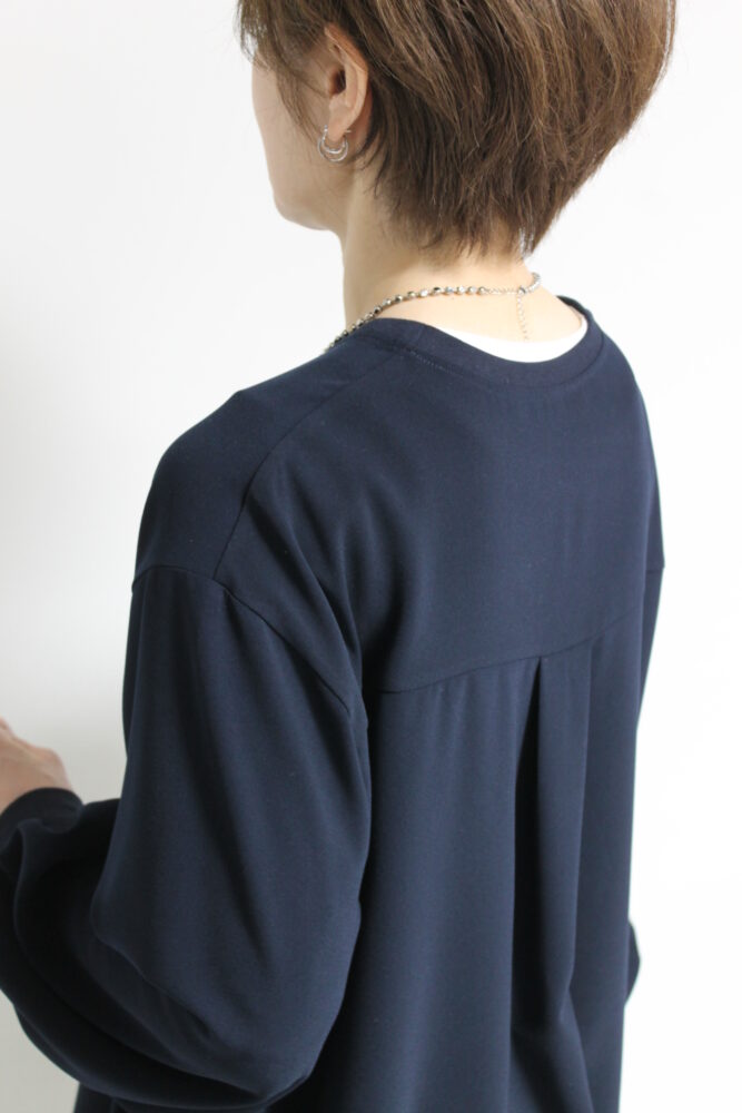 パシオーネ(PASSIONE)ロゴバックタック入りTブラは、Tシャツのカジュアルさとブラウスのきちんと感を兼ね備えたトップス。控えめなロゴ入りで、カットソーではラフになりすぎてしまう大人世代の方におすすめ。気になる身体のシルエットも隠せ、サラっと一枚で着ても決まります。ジャケットやカーデのインナーにも◎