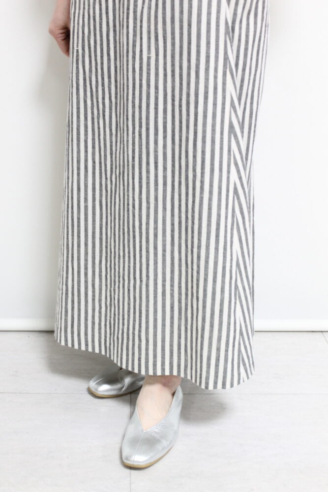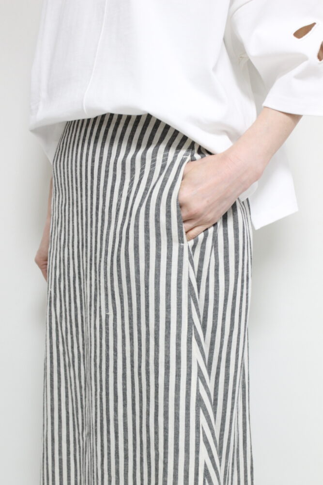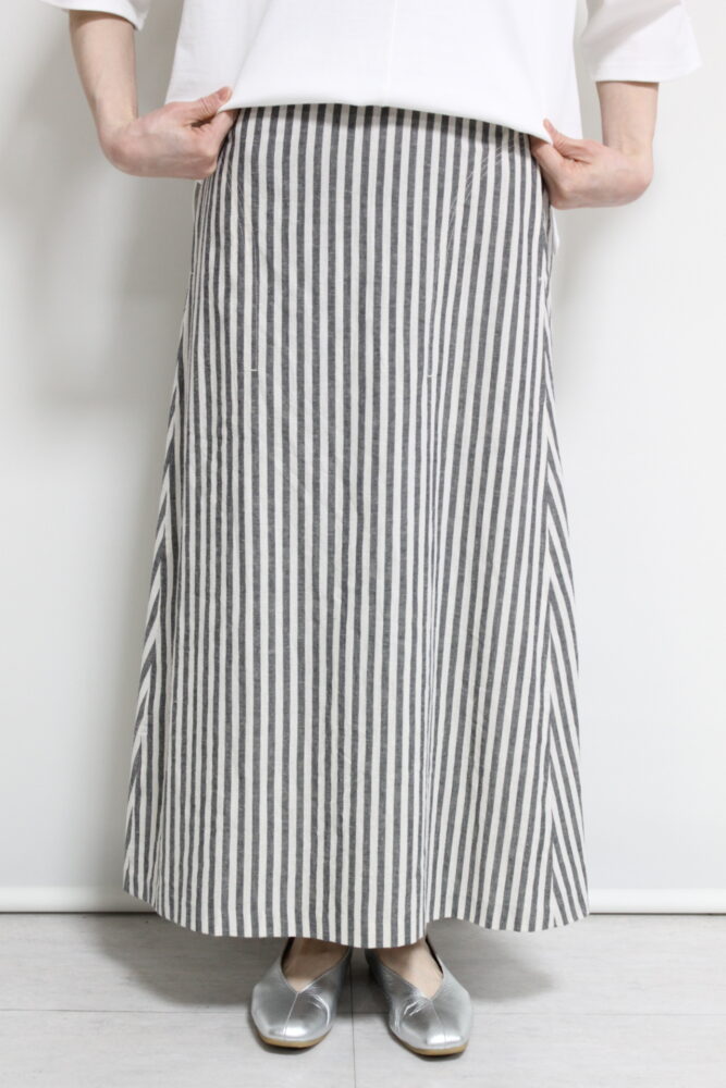 マリードール(MARIED’OR)綿麻Aラインバッグギャザースカート/ストライプ