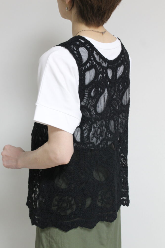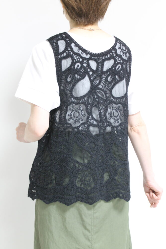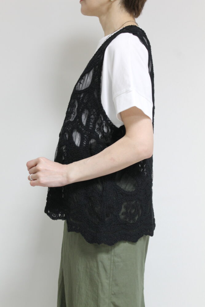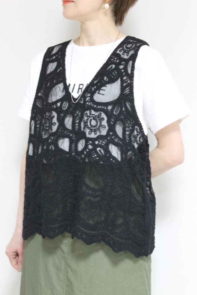 アンカルネ(Un carnet)ラッセルレースベスト/ブラック