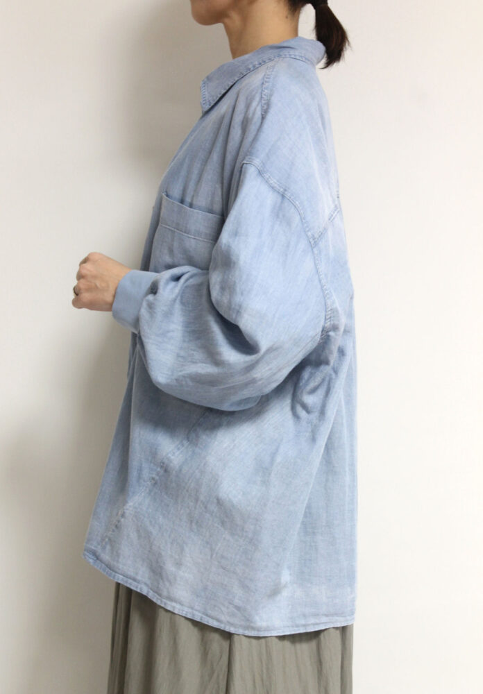 ディニテコリエ(Dignite Collier)シアーデニムシャツ/ブルー
