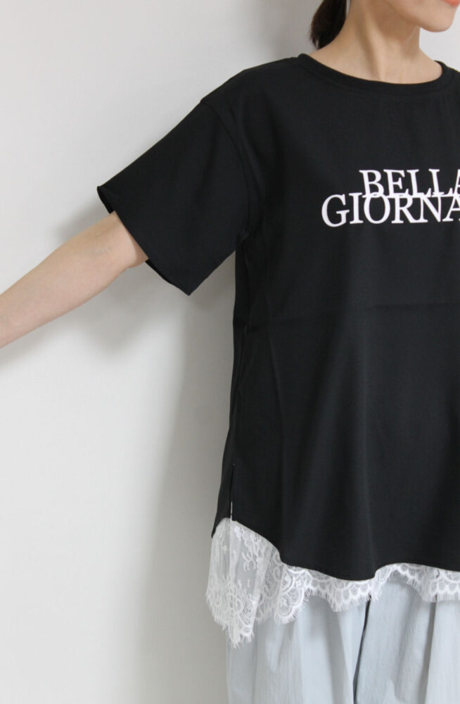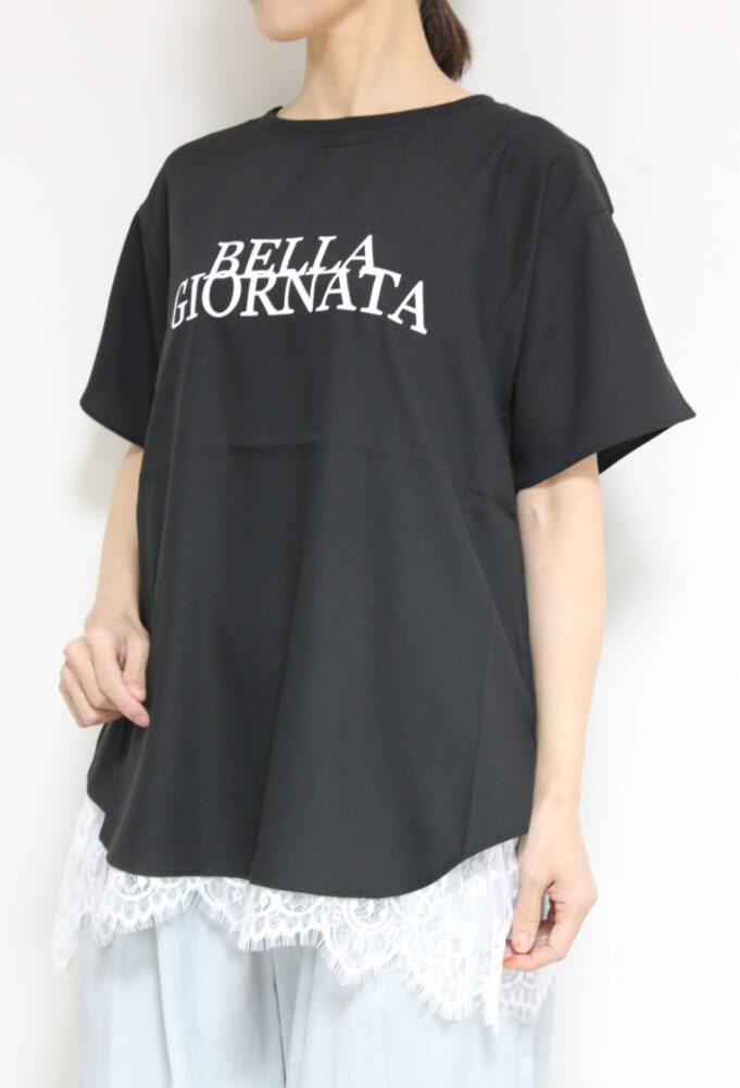 アンナケリー(Anna Kerry)ロゴプリントデシンTシャツ/ブラック×シロロゴ